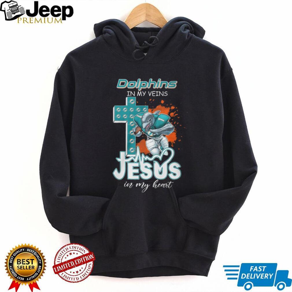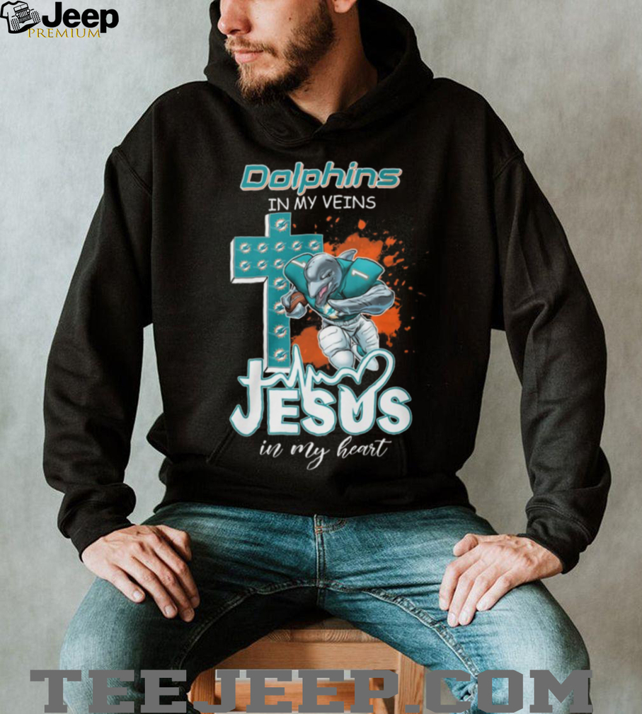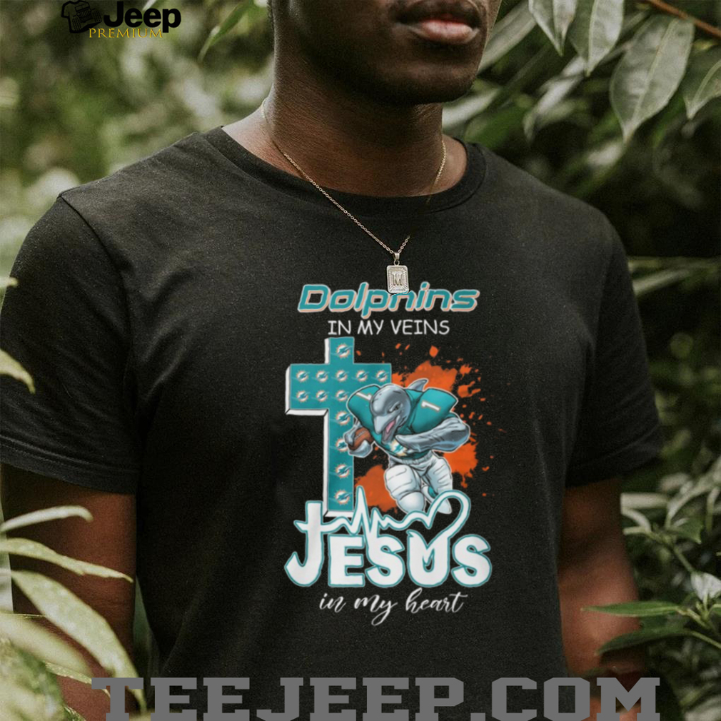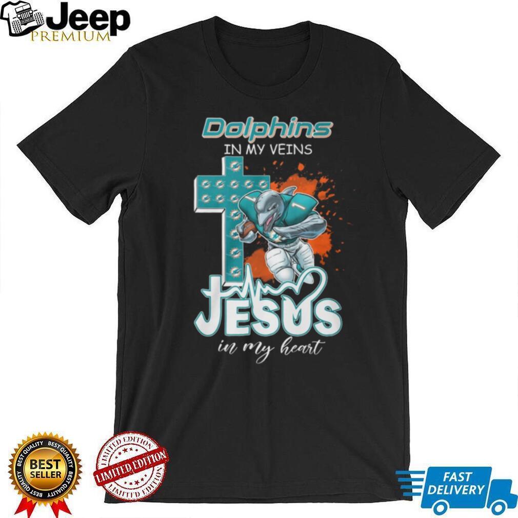 👕 About Miami Dolphins In My Veins Jesus In My Heart T Shirt