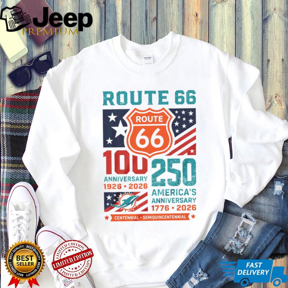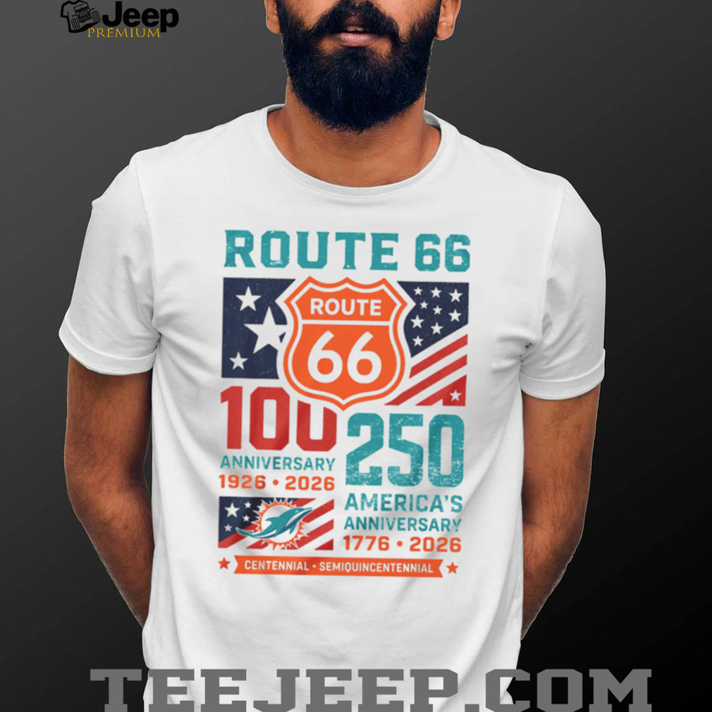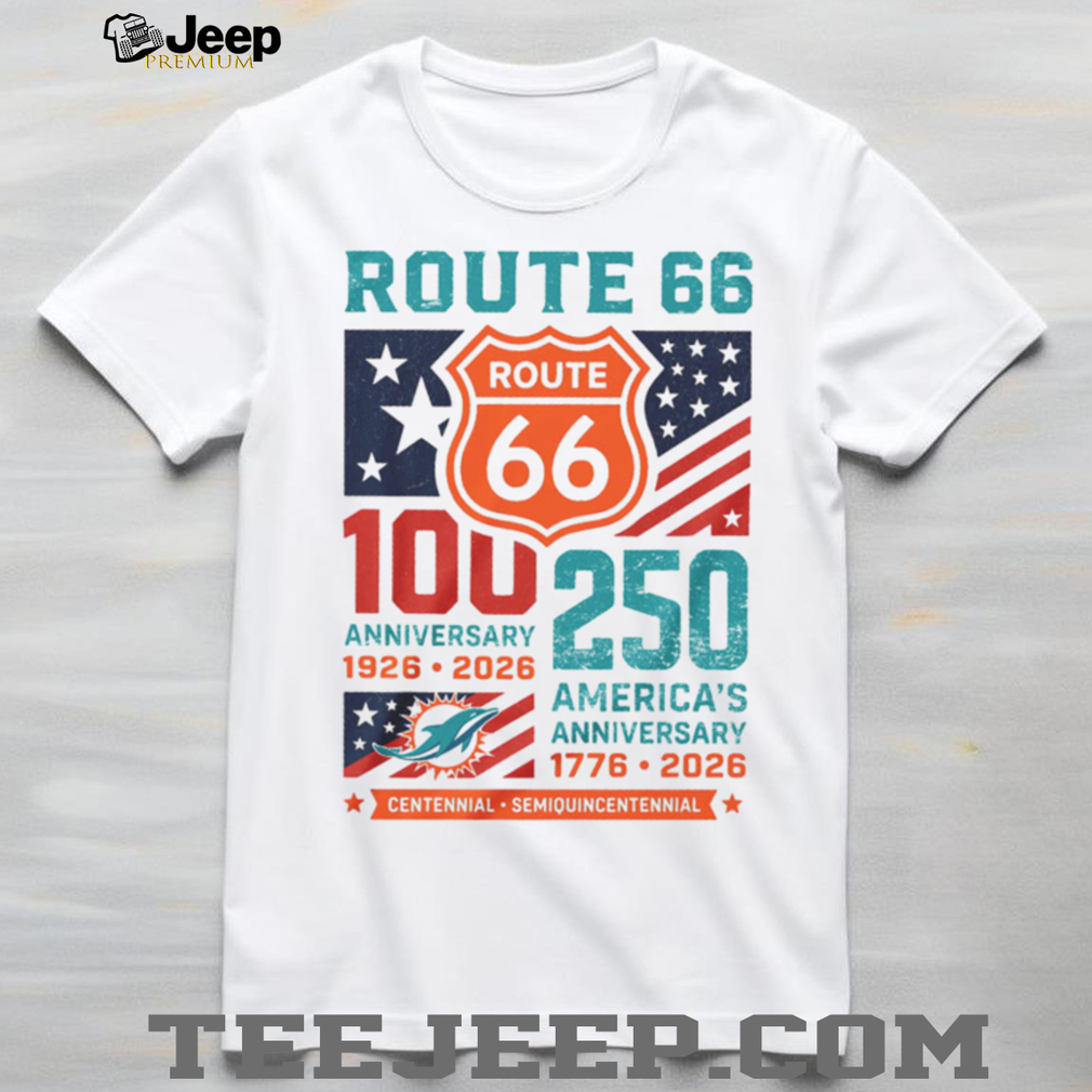 Dolphins fans can celebrate Route 66’s 100th anniversary and America’s 250th birthday with this unique dual-milestone tee. A memorable fan gift for Miami football supporters in 2026.