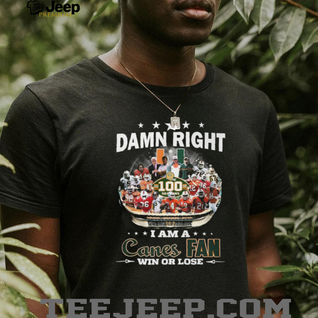 (Miami Hurricanes 100 Seasons Damn Right I Am A Canes Fan Win Or Lose T Shirt)