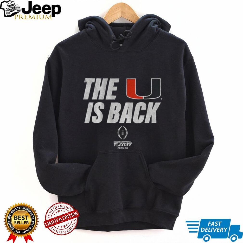 👕 About Miami Hurricanes football 2025 CFP The U Is Back College Football Playoff shirt