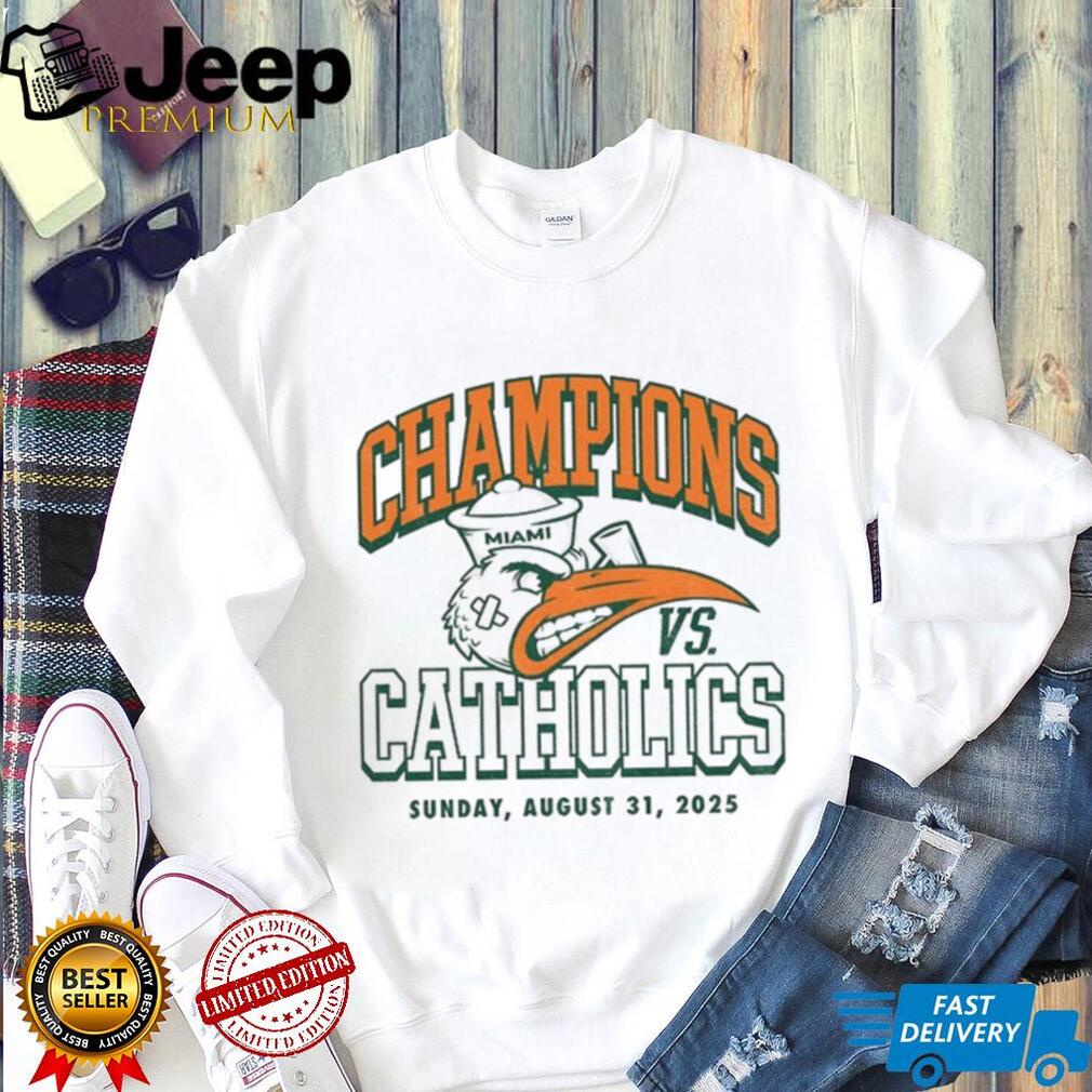 👕 About Miami Hurricanes vs Notre Dame Champions vs Catholics shirt