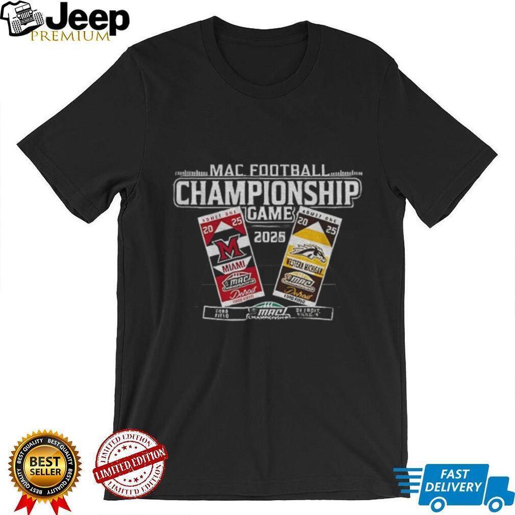 Relive the excitement of the gridiron with this Miami RedHawks vs. Western Michigan Broncos MAC Football Championship Game 2025 shirt! This tee captures the spirit of the epic clash between these two formidable teams. If you were there to witness the action or want to show your support, this shirt is a must-have addition to your wardrobe.