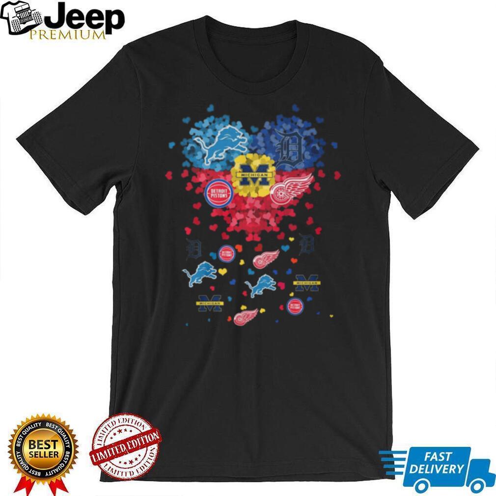 Show your passion with this bold, high-quality graphic tee! The Michigan Sports Teams Heart Logo Fan Lions Pistons Wings Wolverines shirt is designed for true fans who want to wear their pride loud and clear. Featuring eye-catching artwork and premium comfort, it’s perfect for game day, casual wear, or gifting to the fan who has everything — except this.