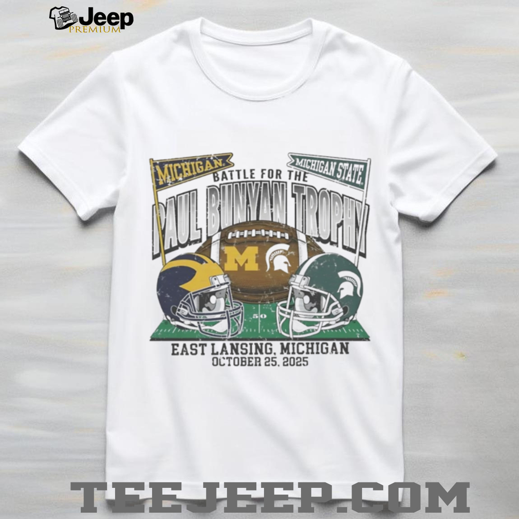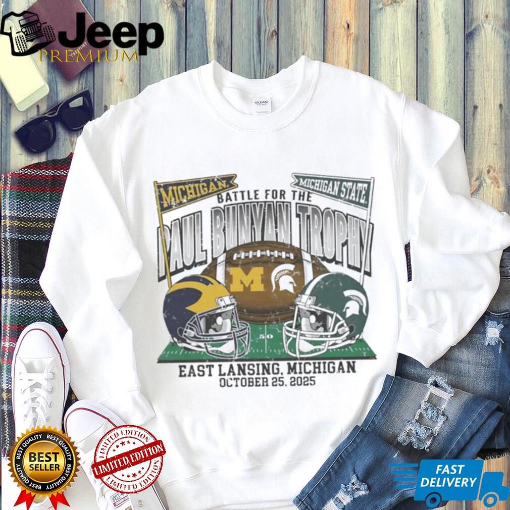 Gear up for the gridiron clash with this Michigan State Spartans vs. Wolverines “Battle for the Paul Bunyan Trophy” shirt! This tee commemorates the classic rivalry game and lets you show your true colors. Whether you’re tailgating or watching from home, this shirt is the perfect way to represent your team.