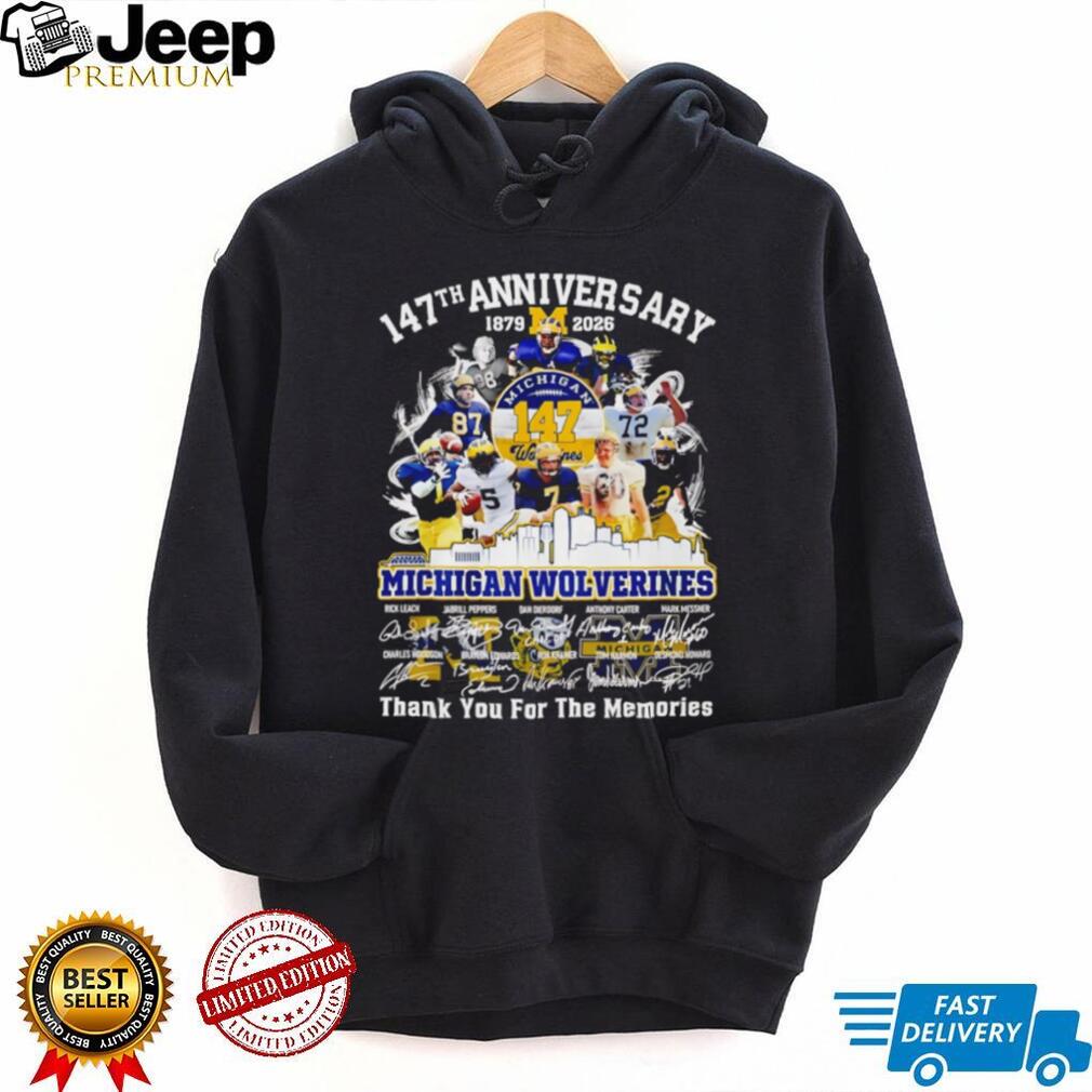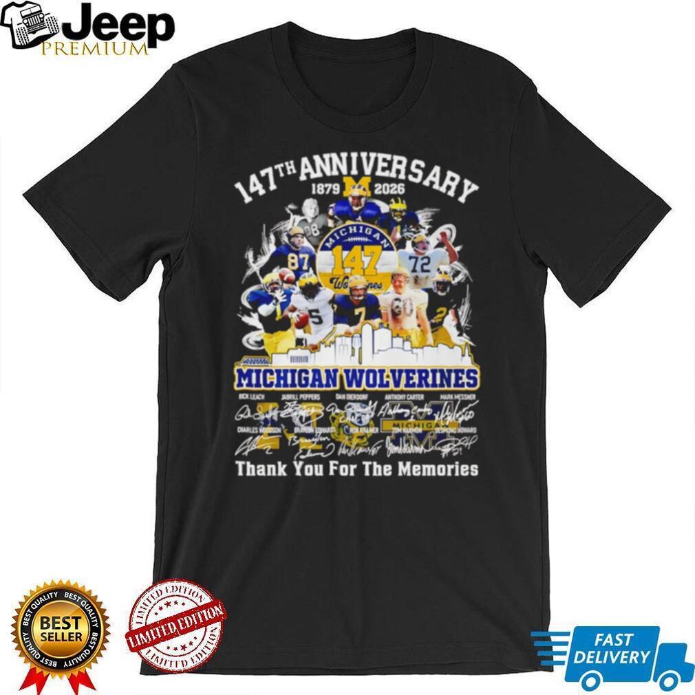 (Michigan Wolverines 147th Anniversary (1879 2026) Legends Signatures T Shirt)Apr 28