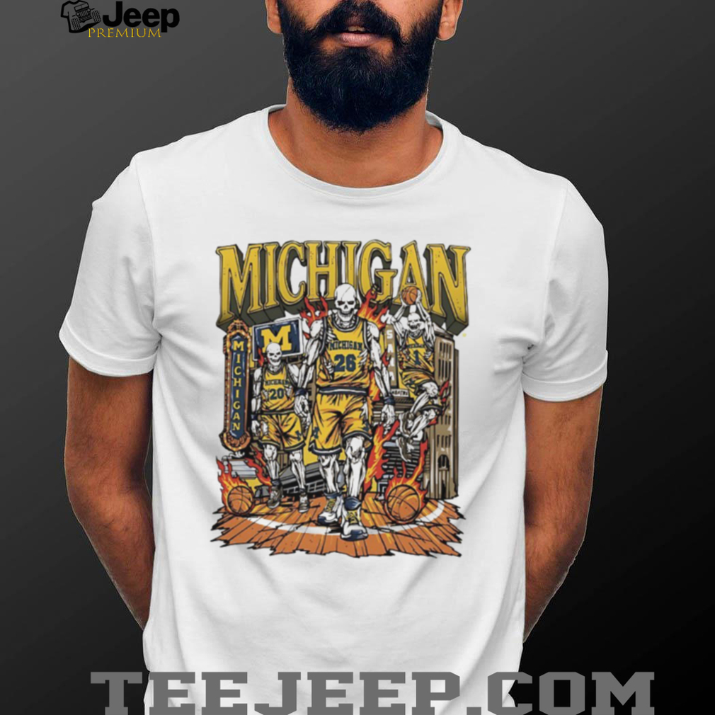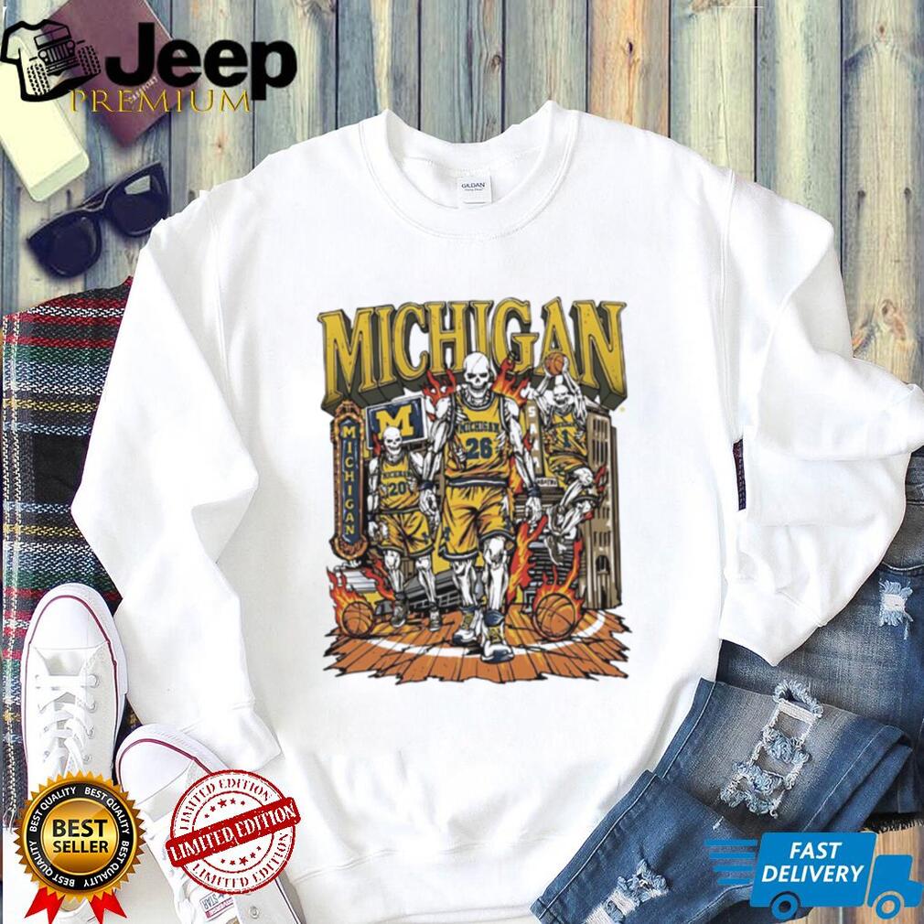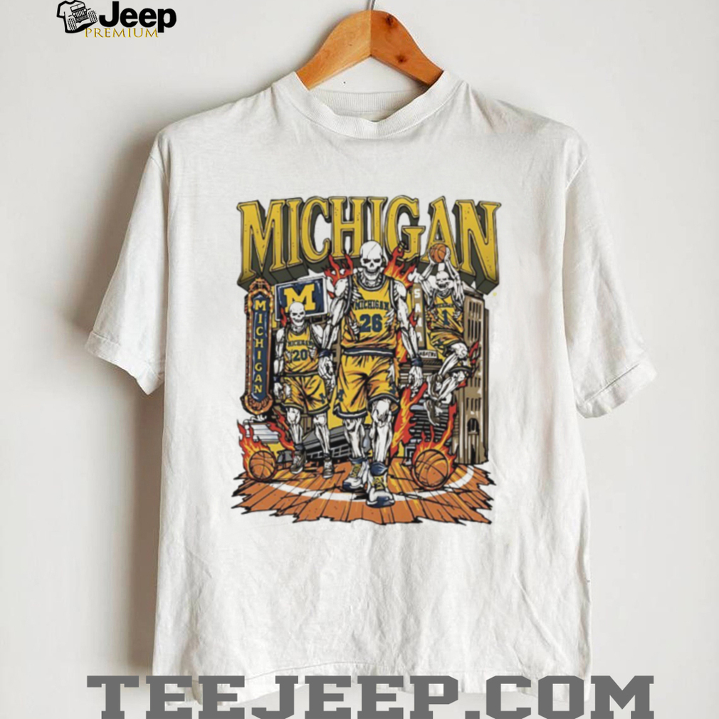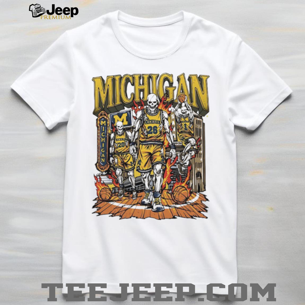 (Michigan Wolverines Basketball Skeletons Flaming Hoop T Shirt)Apr 16