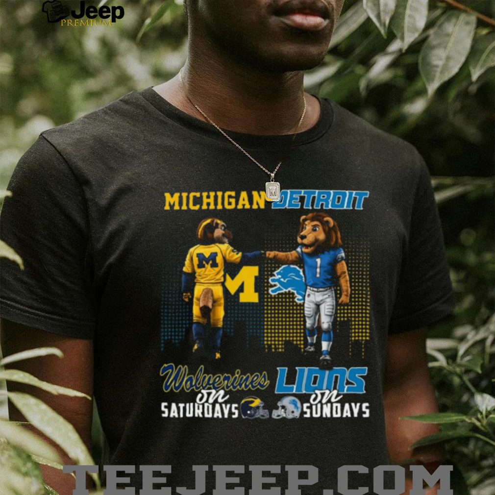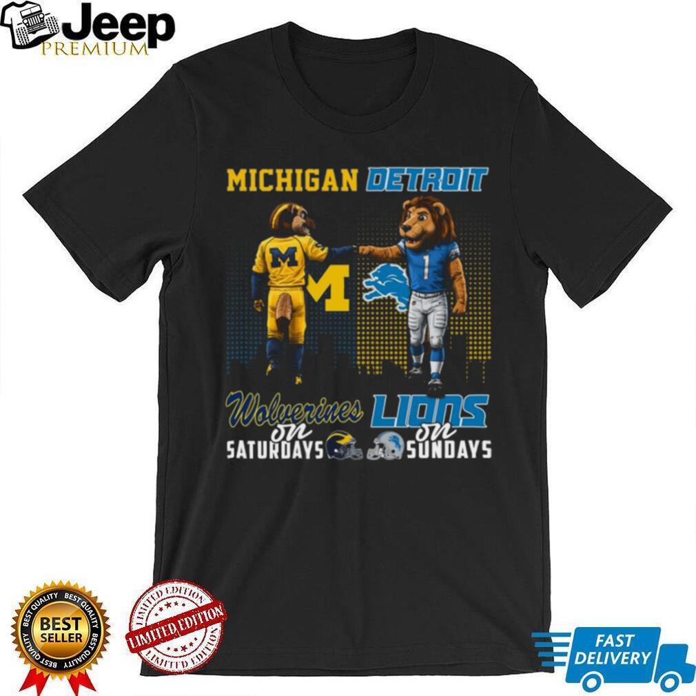 (Michigan Wolverines on Saturdays Detroit Lions on Sundays Mascot Fist Bump T Shirt)