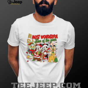 The ‘Mickey Mouse and Friends it’s the most wonderful time of the year Merry Christmas shirt’ is designed for the young and young-at-heart alike. It’s perfect for families planning a holiday trip to a theme park, individuals attending an ugly Christmas sweater (or in this case, a charming Christmas shirt) party, or anyone who simply loves to inject a little Disney magic into their everyday holiday wear. Consider it as a delightful gift for a friend who grew up with Disney, a thoughtful present for a child’s Christmas Eve box, or a treat for yourself to wear while unwrapping gifts. As seen in the second image, this shirt radiates a playful spirit, making it ideal for creating lasting holiday memories and spreading cheer at any festive occasion.