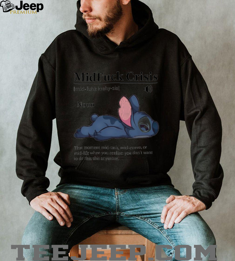 Having one of those days? This MidFuck Crisis Noun Definition Shirt perfectly captures that feeling with a hilarious twist! Combining the iconic Lilo & Stitch with a snarky definition, this tee is for anyone who appreciates a good laugh and doesn’t take life too seriously. If you’re a fan of Stitch and need a way to express your current mood, this shirt is for you.
