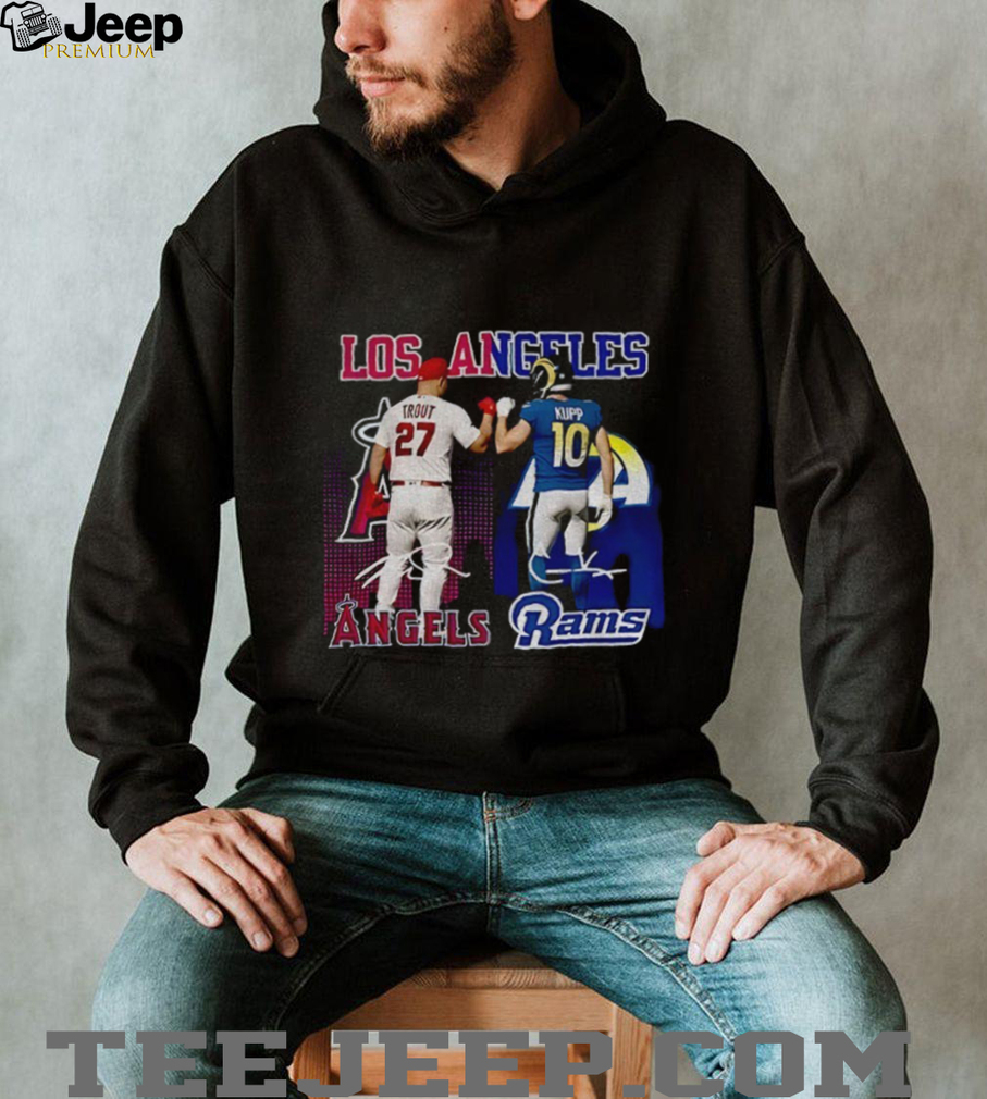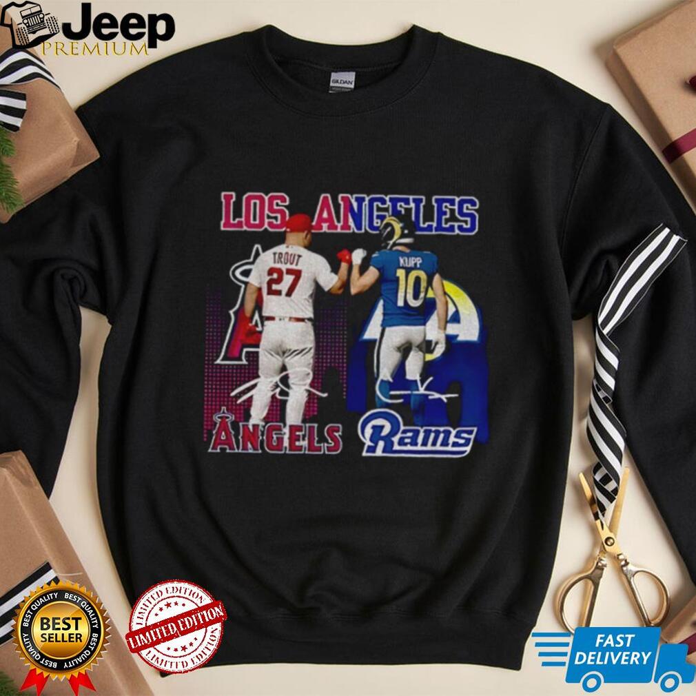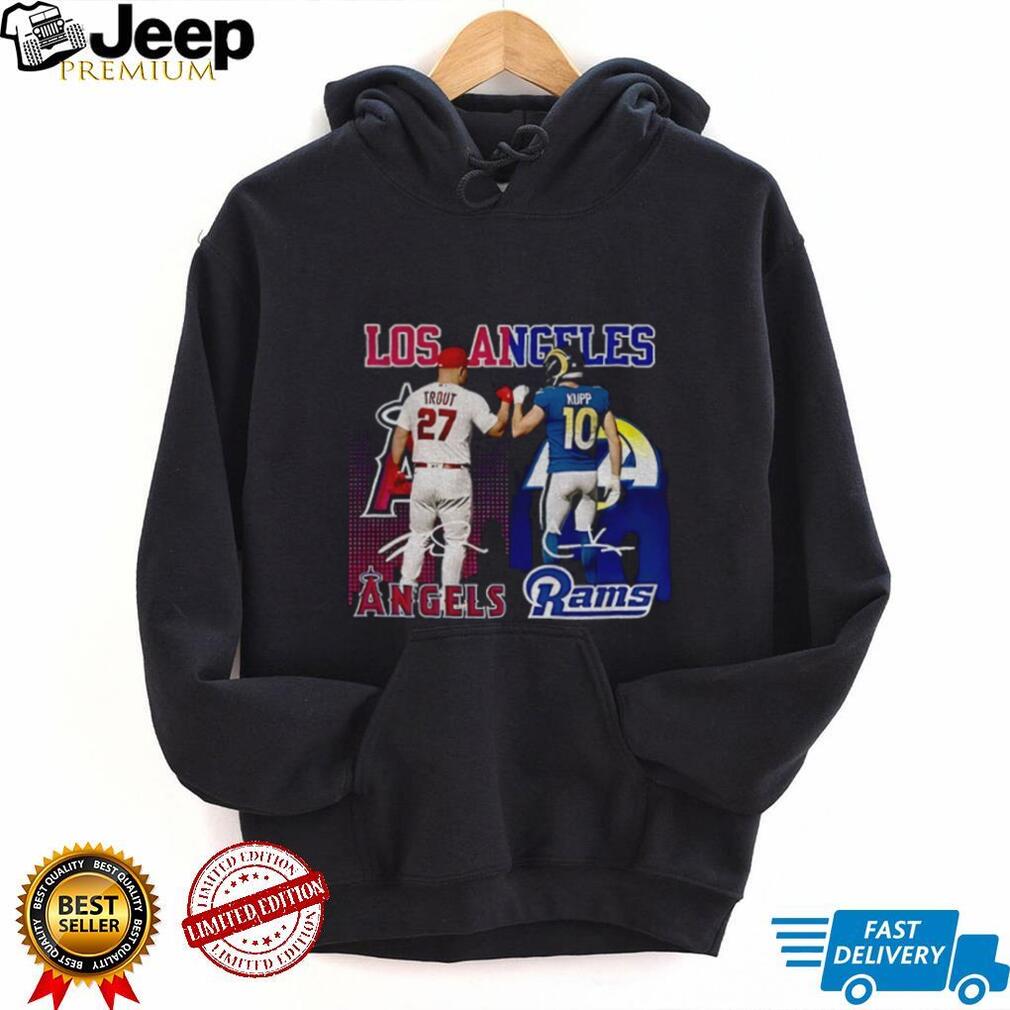 Ready to make a statement that transcends typical fan apparel and celebrates the collective might of Los Angeles sports? The Mike Trout Los Angeles Angels x Cooper Kupp Los Angeles Rams signature sports shirt is a conversation starter, a symbol of admiration, and a testament to your deep connection with the vibrant L.A. sports scene. Its unique design featuring both icons makes it a standout item, perfect for those who appreciate greatness across different fields. Don’t miss out on owning a piece of this unprecedented sports history before it becomes a legendary collector’s item! This isn’t just clothing; it’s a badge of honor for those who understand that true fandom knows no bounds, especially when it comes to the top talent in the game. Get yours now and proudly display your allegiance to the ultimate L.A. sports duo!