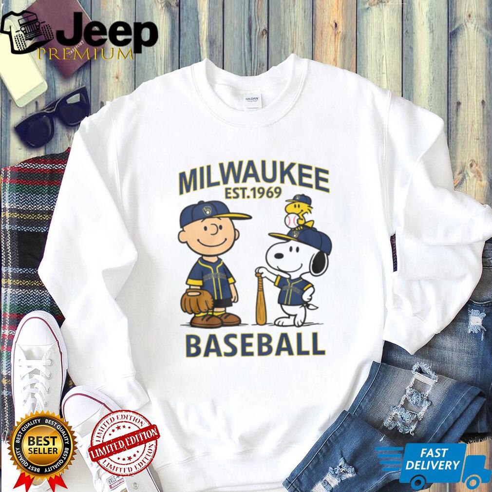 ()Milwaukee Brewers Baseball Peanuts Charlie Brown and Snoopy Fan T Shirt, Treat yourself or make a great gift for your loved ones