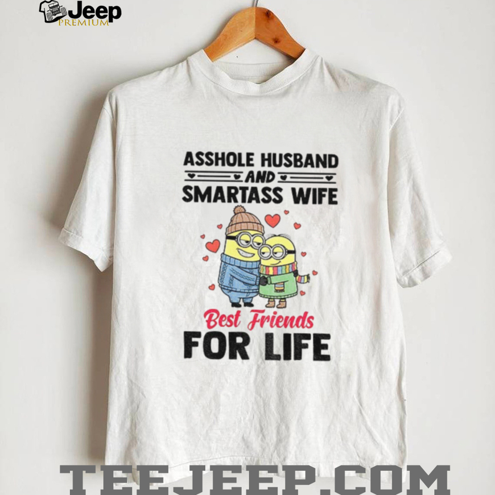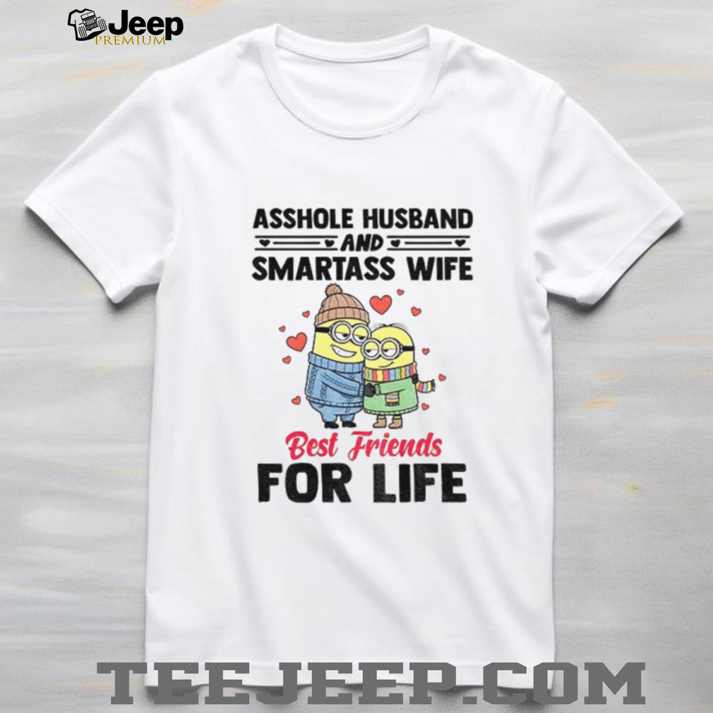 Does your relationship involve a healthy dose of sarcasm and Minion madness? This “Minion asshole husband and smartass wife best friends for life” shirt is the perfect way to celebrate your unique bond! It’s a hilarious and playful nod to the dynamics of your relationship.