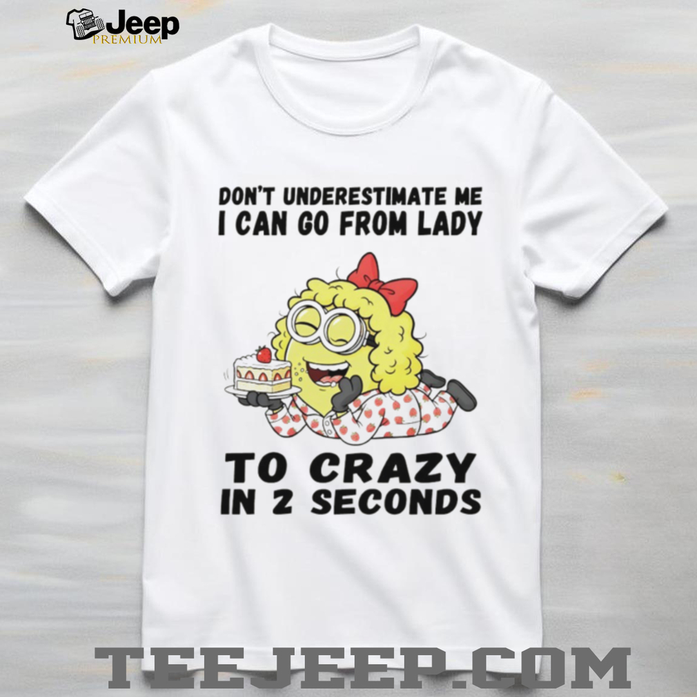 (Minion don’t underestimate me I can go from lady to crazy in 2 seconds shirt)Minion don’t underestimate me I can go from lady to crazy in 2 seconds shirt, Treat yourself or make a great gift for your loved ones