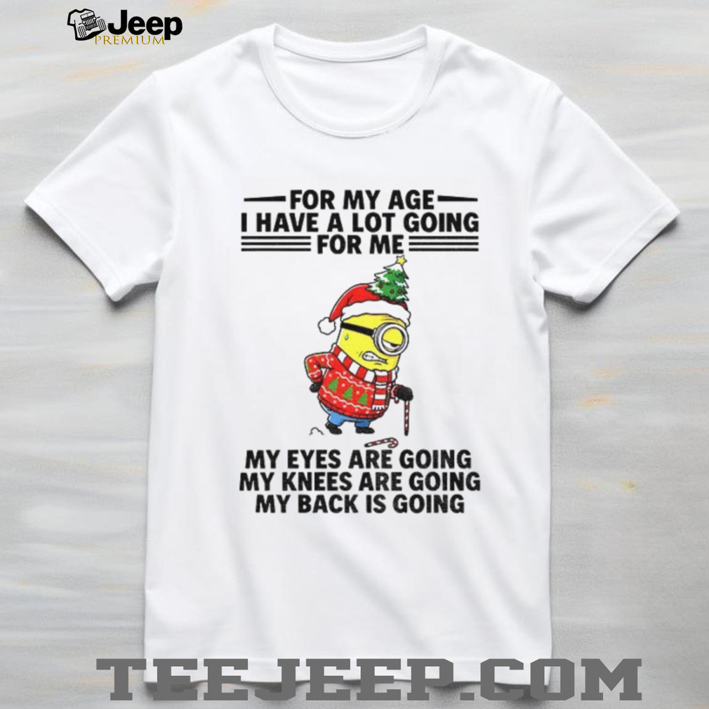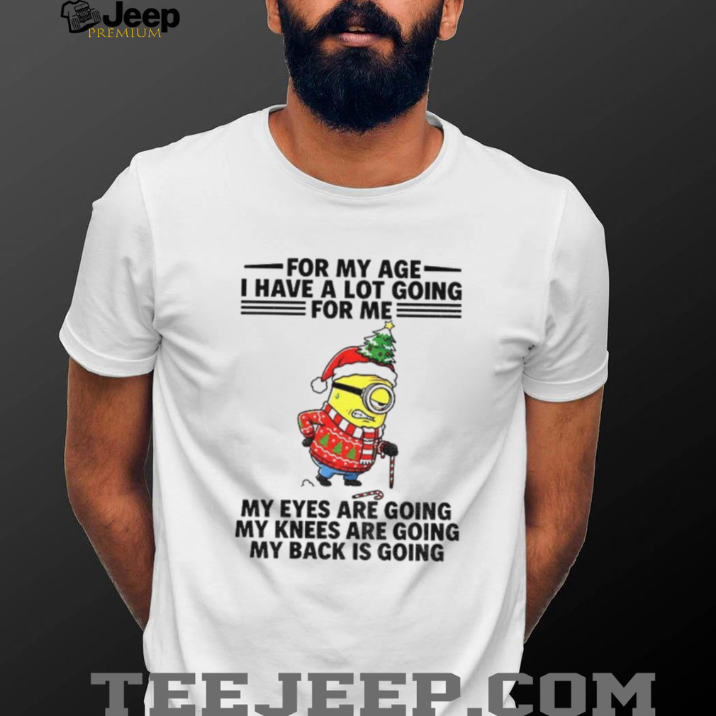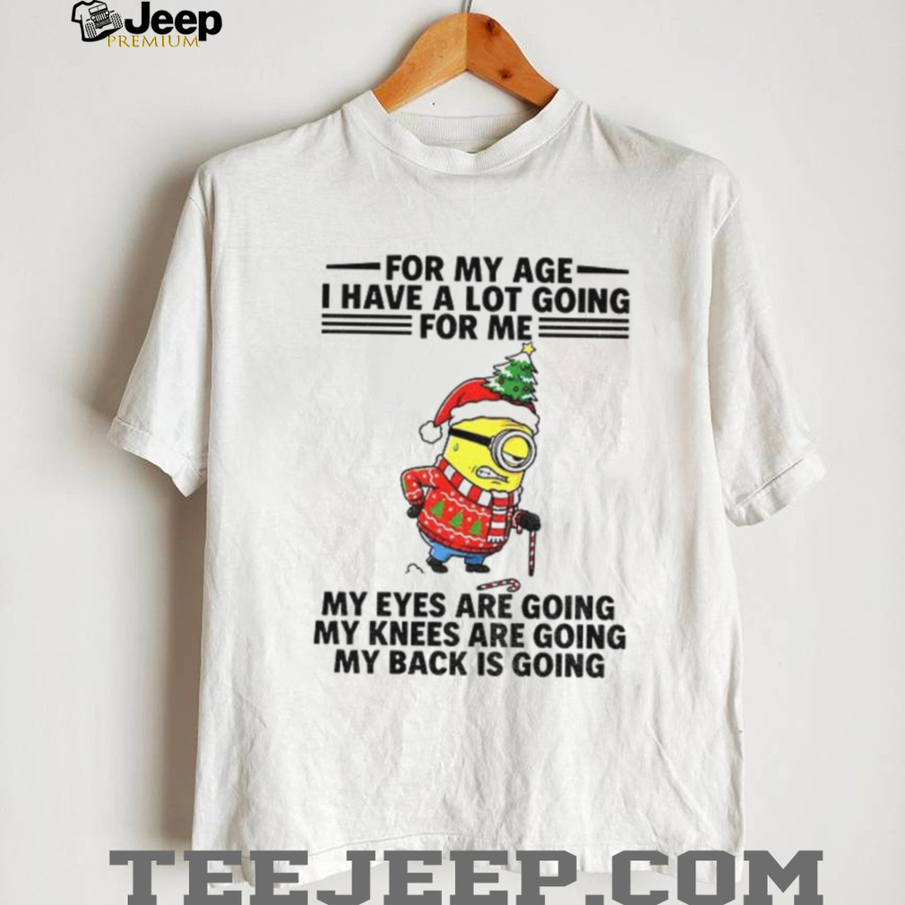 Embrace aging with laughter in this “Minion for my age” Christmas shirt! A humorous take on getting older, this shirt features a relatable Minion with failing eyes and knees. Perfect for seniors with a sense of humor during the festive season!
