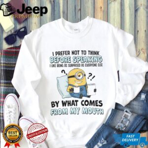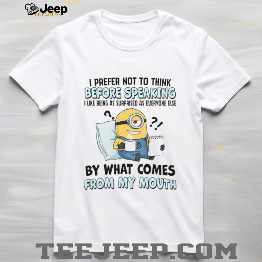 Embrace your spontaneous side with this hilarious Minion T-shirt! Featuring the funny saying “I prefer not to think before speaking I like being as surprised as everyone else by what comes out”, this tee is perfect for those who speak their mind. It’s sure to get a laugh and is perfect for casual wear or as a fun gift!