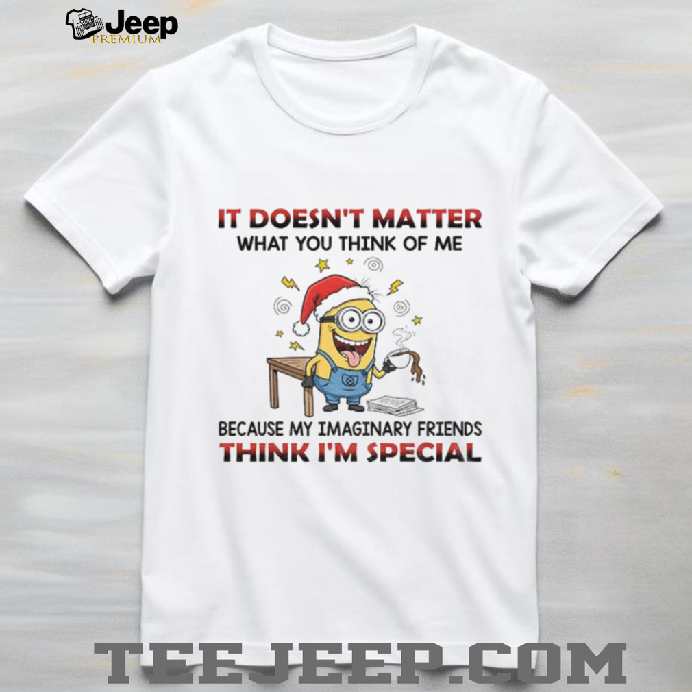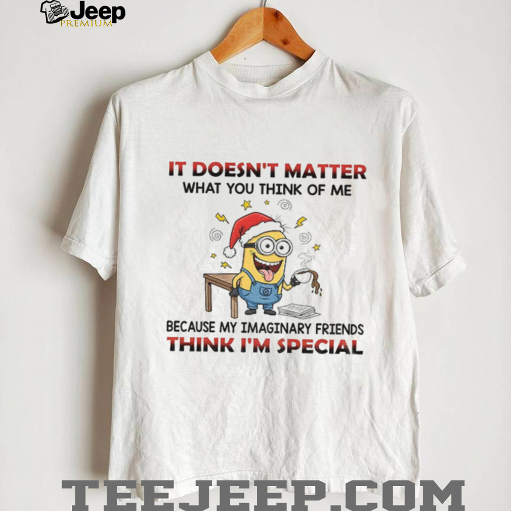 With each Minion it doesn’t matter what you think of me because my imaginary friends think I’m special Christmas shirt, you are contributing to creating a green tree.