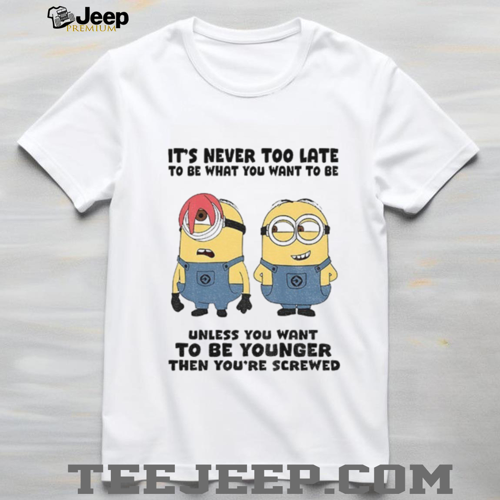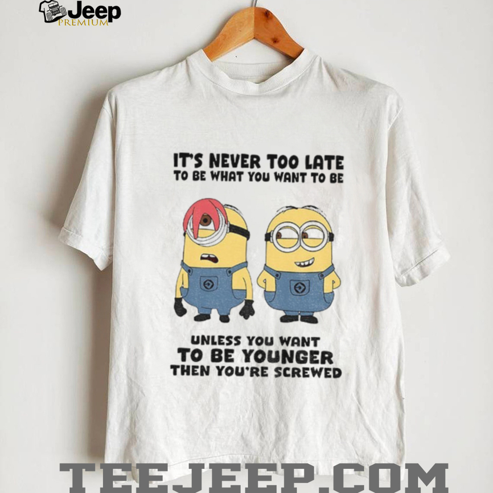 👕 About Minion it’s never too late to be what you want to be unless you want to be younger shirt
