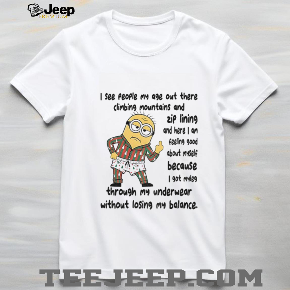 Ever had one of those days where you scroll through social media, see people your age conquering Everest, and think, ‘Seriously? I just want a nap’? This ‘Minion middle finger I see people my age out there climbing mountains and zip lining and here I am feeling shirt’ perfectly captures that relatable sentiment with a cheeky Minion twist. It’s for anyone who’s embracing their inner couch potato while the world races by, offering a hilarious take on aging gracefully (or not so gracefully). This isn’t just a shirt; it’s a mood, a statement, and a knowing wink to everyone who gets it.