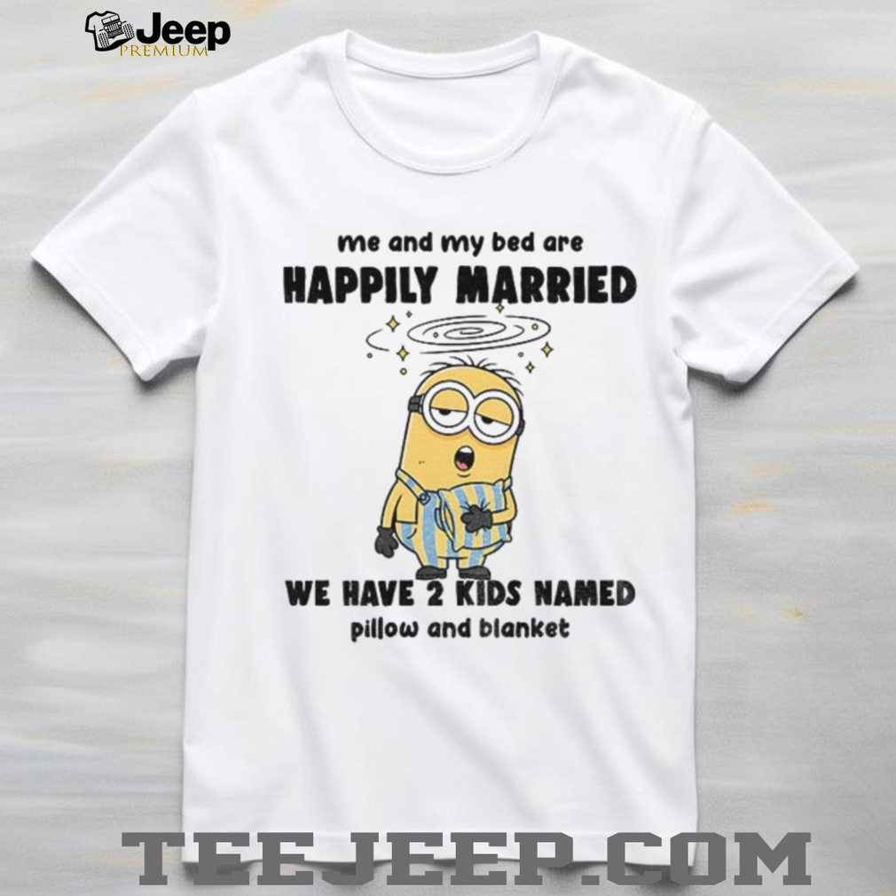 What Makes This Minion sleep me and my bed are happily married we have 2 kids named pillow shirt Epic