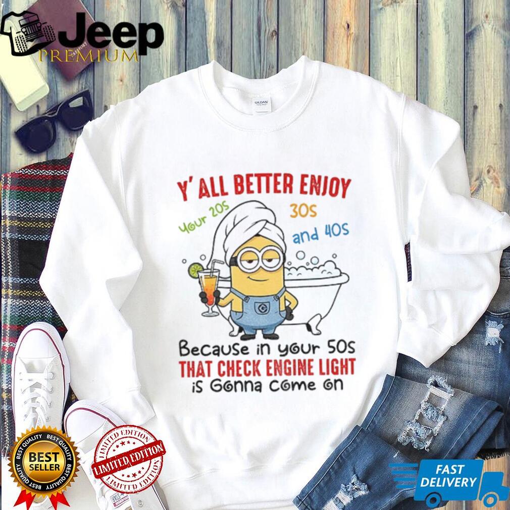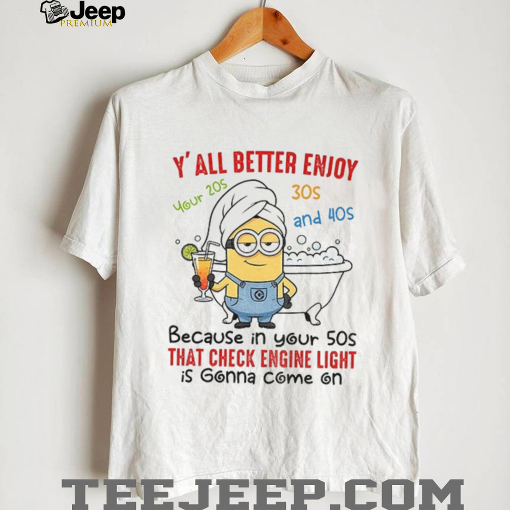 ()Minion y’all better enjoy your 20s 30s and 40s because in your 50s that check engine light shirt, Treat yourself or make a great gift for your loved ones