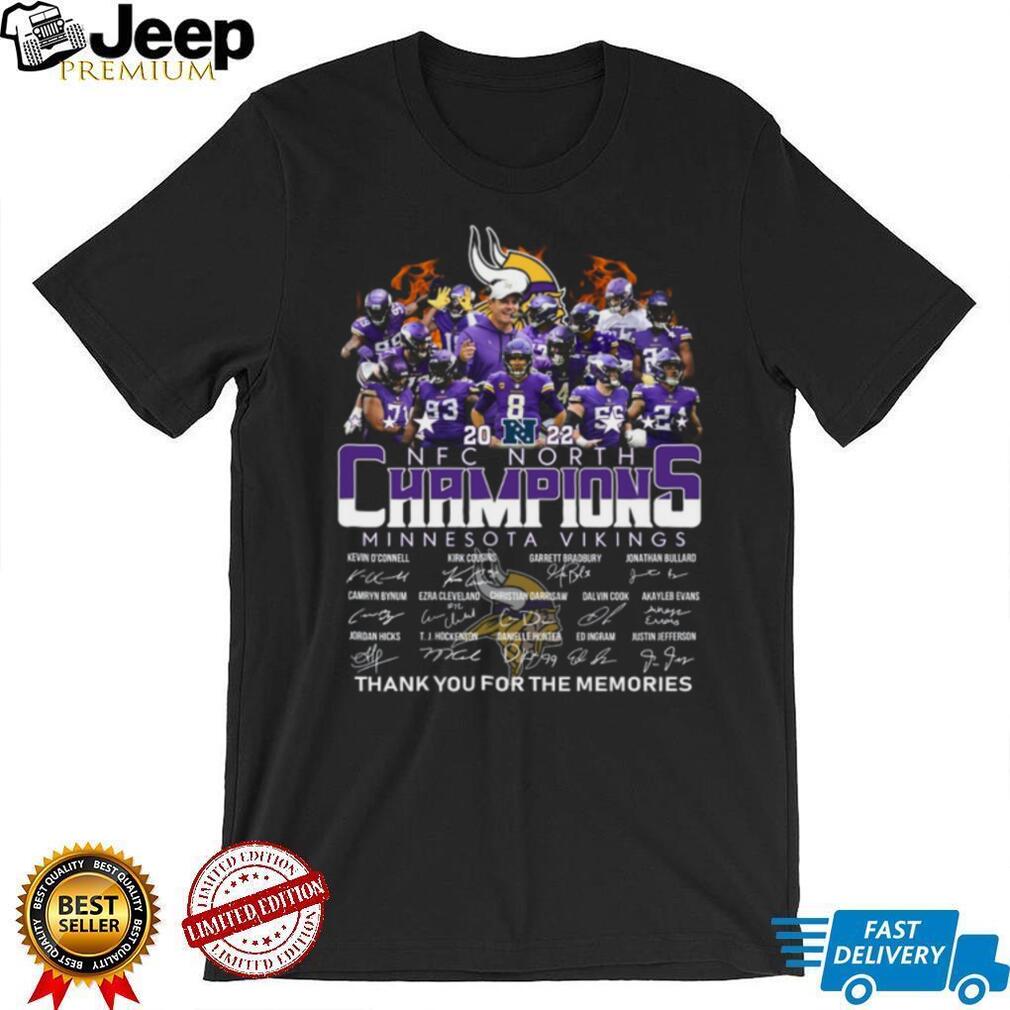 This tee is perfect for any die-hard Minnesota Vikings fan, especially those who followed the team’s journey to the 2022 NFC North title. It’s ideal for game days, fan gatherings, or as a proud display of your team spirit in your everyday life. The “Thank You For The Memories” message and player signatures make it a significant item for collectors and anyone who appreciates the history of their favorite team. This Minnesota Vikings 2022 NFC North Champions T Shirt also makes an excellent gift for birthdays, holidays, or to simply surprise a fellow Vikings enthusiast with a piece of their team’s history.