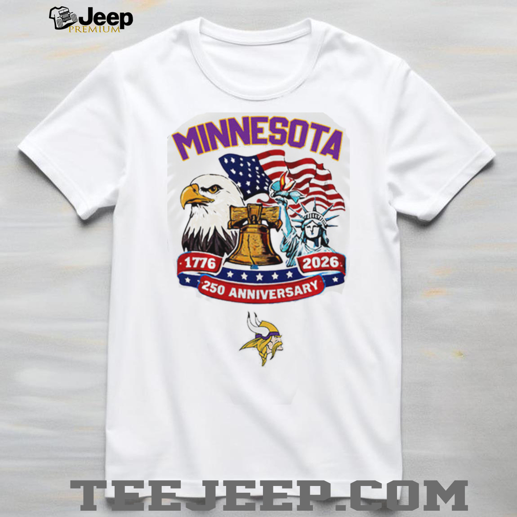 👕 About Minnesota Vikings 250th Anniversary Liberty Eagle Jersey T Shirt Personalized
