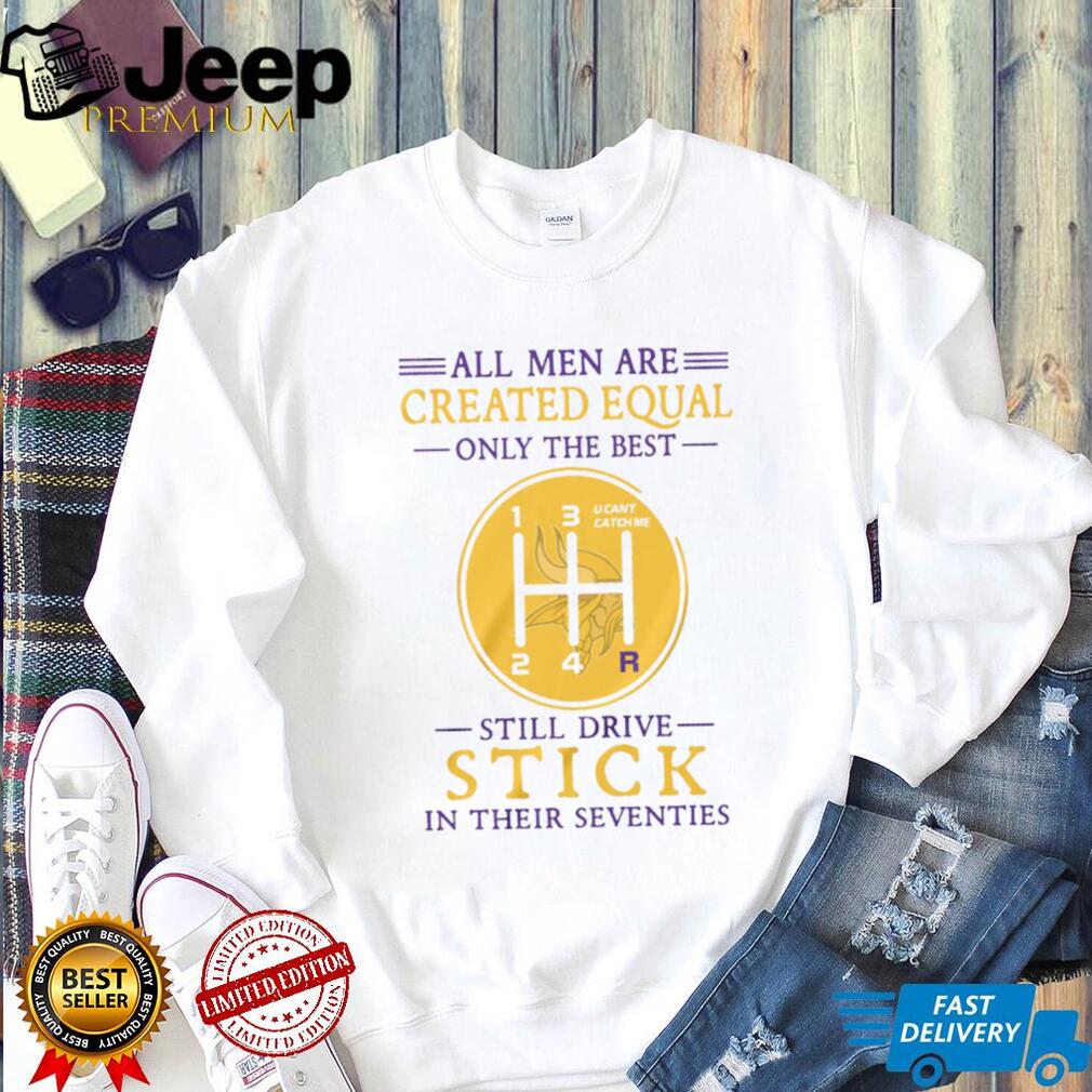 (Minnesota Vikings All Men Created Equal Stick Shift Driver 70s Birthday T Shirt)