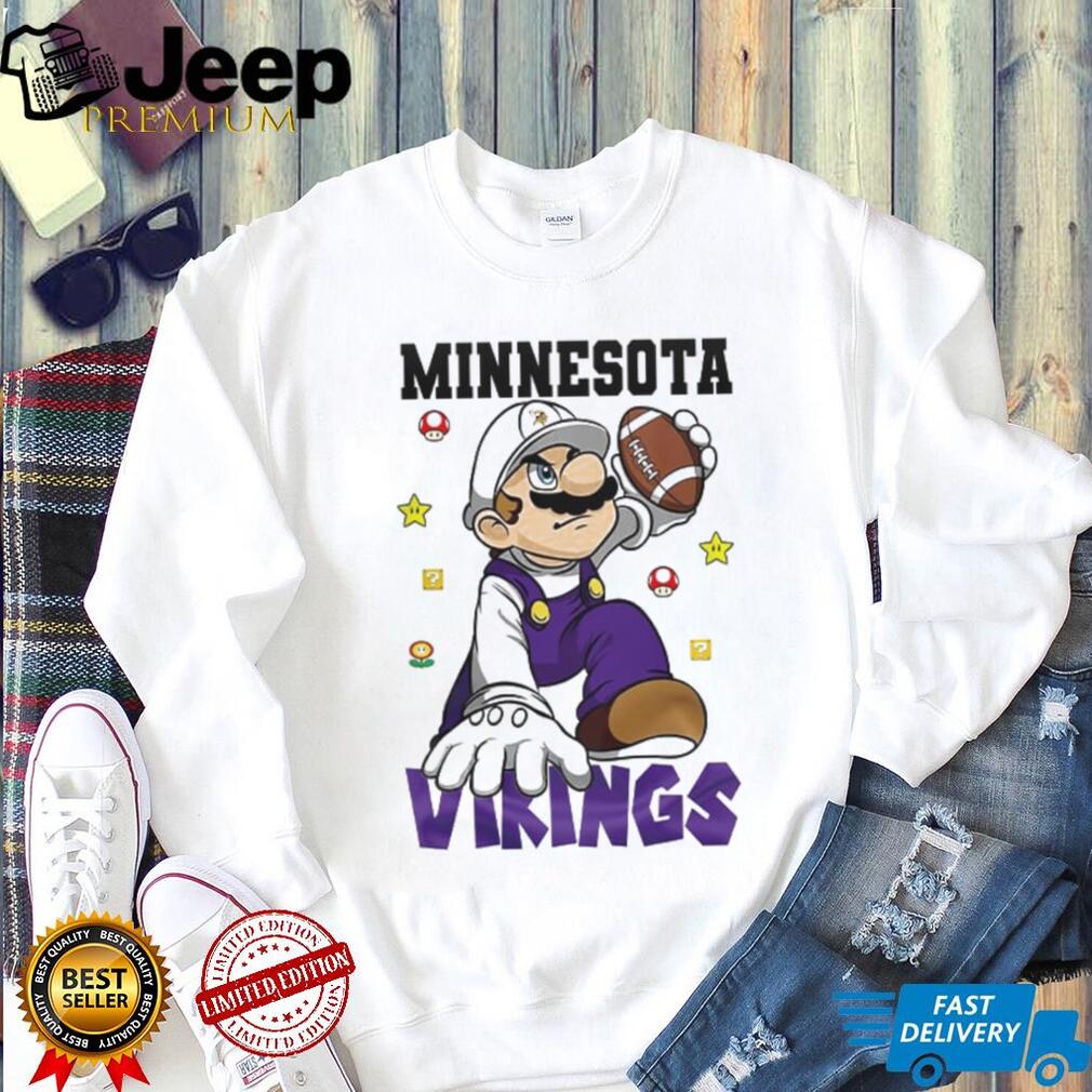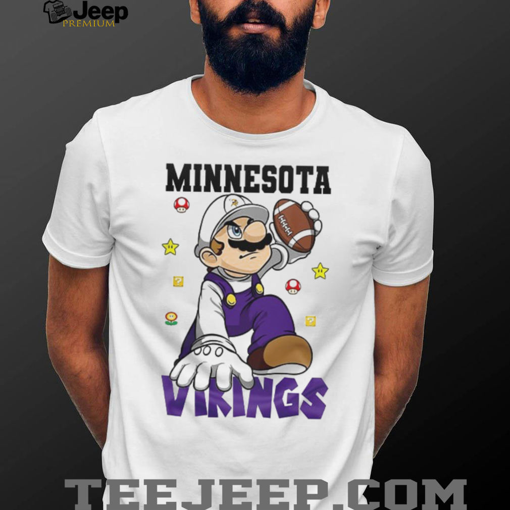 This Minnesota Vikings Super Mario mashup shirt blends the worlds of football and gaming, offering fans an emotional connection to both. Solving the problem of what to wear that shows off your unique interests, this tee is perfect for game days or casual hangouts. Made from a soft, comfortable cotton blend, it features a creative and durable design that stands out from the crowd. Get ready to turn heads and spark conversations!