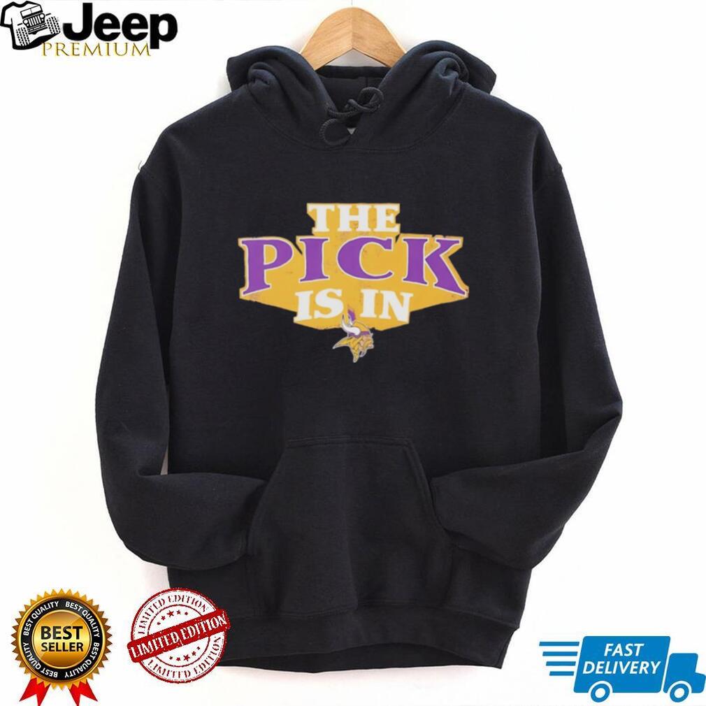 (Minnesota Vikings The Pick Is In NFL Draft Black T Shirt)Apr 21