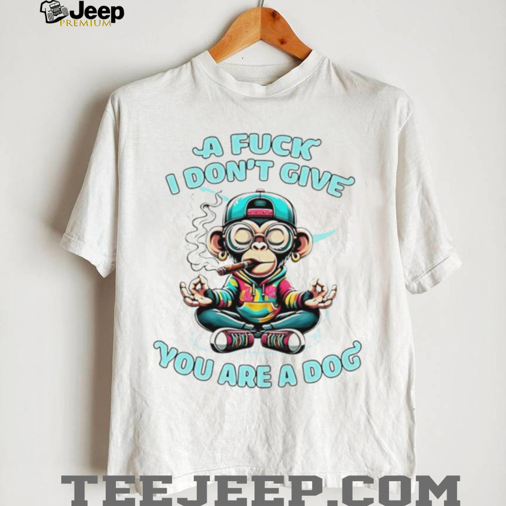 The “Monkey a fuck I don’t give you are a dog shirt” is a piece of apparel that uses a highly offensive and nonsensical combination of words to express extreme defiance and disregard towards another person. The phrase “a fuck I don’t give” is a vulgar way of stating that the speaker does not care at all. The inclusion of “monkey” as the subject of this lack of care is dehumanizing and offensive, often carrying racist connotations depending on the context and intended target. The concluding statement “you are a dog” is also a derogatory insult, implying that the person is subservient, contemptible, or ill-behaved. Overall, the shirt’s message is one of intense disrespect and dismissal.