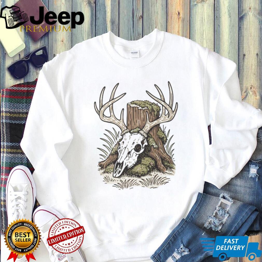 ()Mossy Deer Skull Antlers Forest Stump Hunting Graphic T shirt, Treat yourself or make a great gift for your loved ones