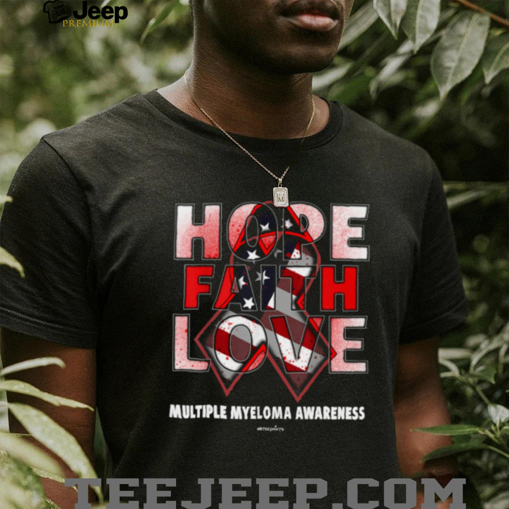 (Multiple Myeloma Awareness Hope Faith Love American Flag Ribbon T Shirt)Multiple Myeloma Awareness Hope Faith Love American Flag Ribbon T Shirt, Treat yourself or make a great gift for your loved ones