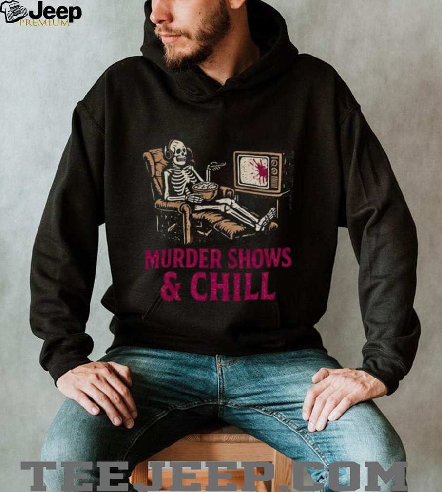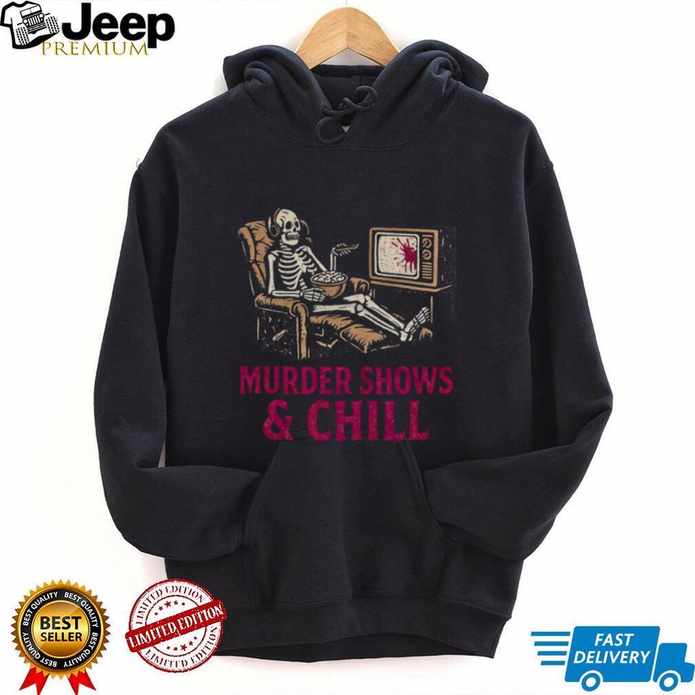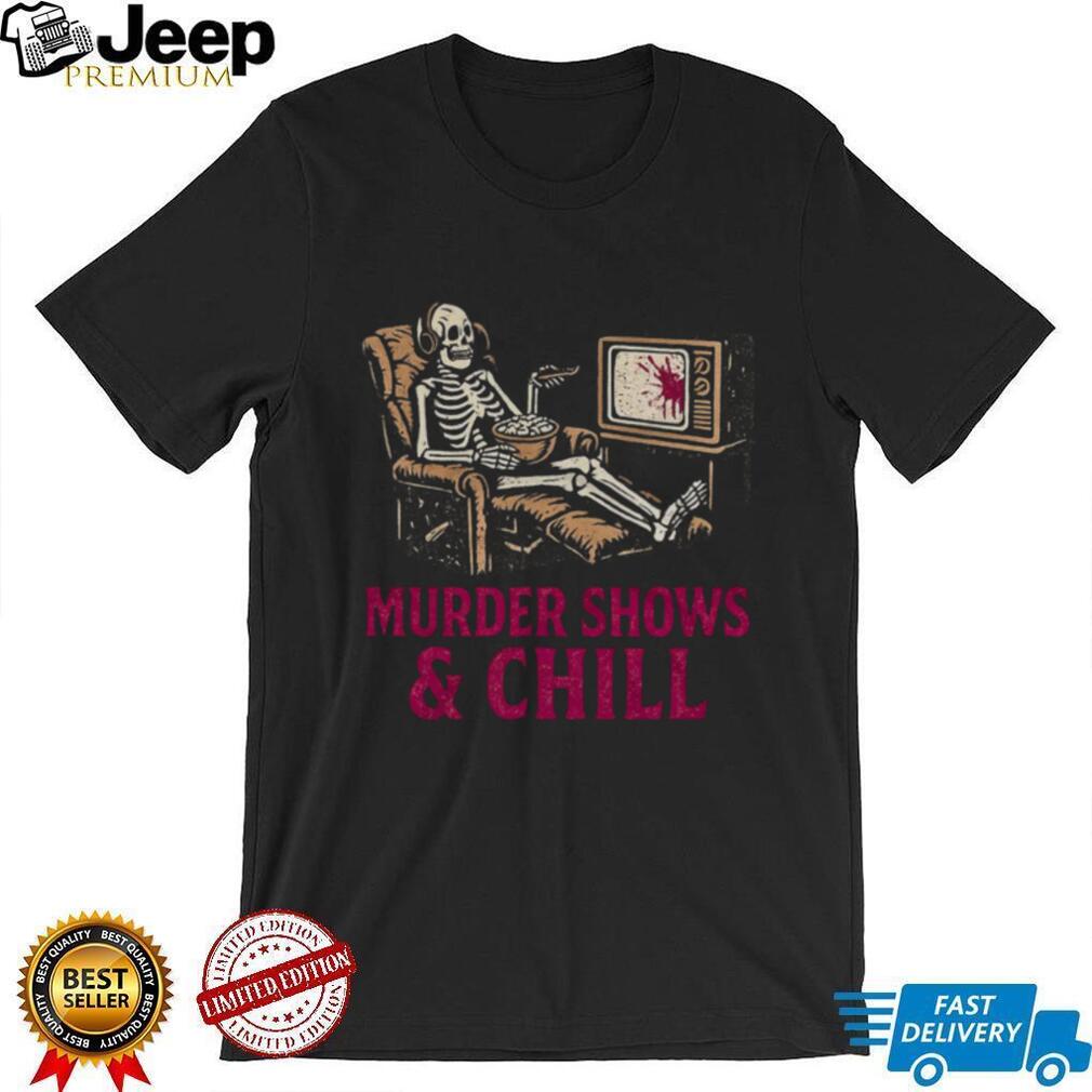 ()Murder Shows and Chill Skeleton in Recliner Dark Humor T Shirt, Treat yourself or make a great gift for your loved ones