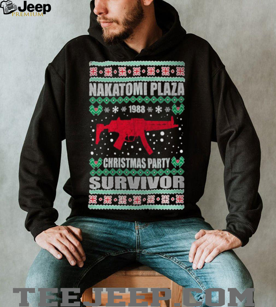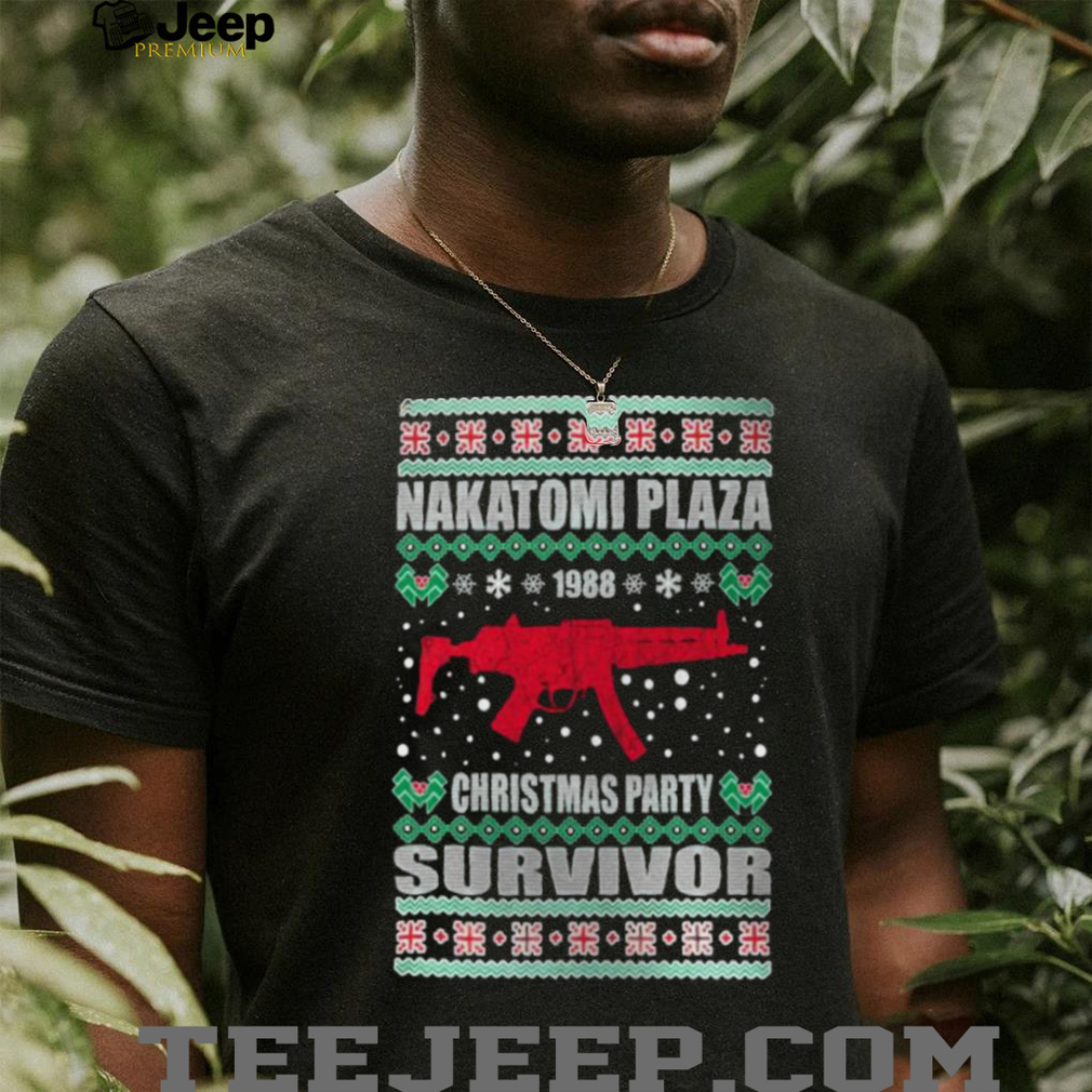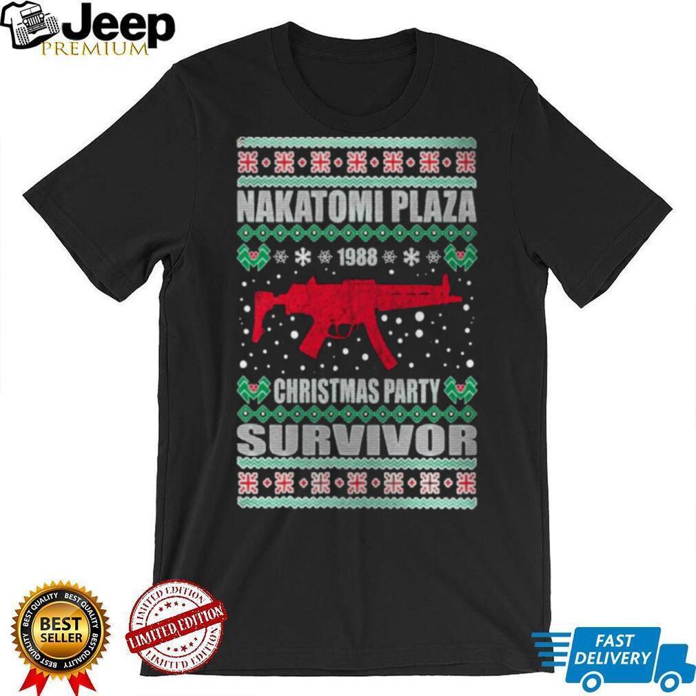 Yippee-ki-yay, Santa Claus! This Nakatomi Plaza Christmas Party Survivor 1988 shirt is the perfect way to celebrate the holidays with a Die Hard twist. Featuring a retro design, this ugly Xmas tee is a must-have for any fan of the iconic action movie. Get ready to spread some holiday cheer (and explosions) this Christmas!