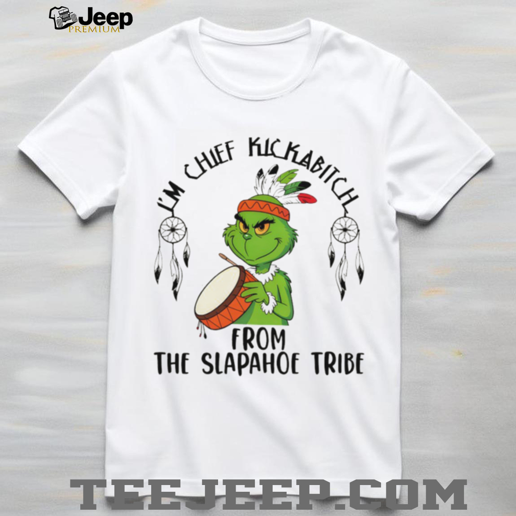 Ready to ditch the saccharine sweetness of typical holiday wear? Our Native Grinch funny I’m chief kickabitch from the slapahoe tribe Christmas shirt is for those who celebrate Christmas with a side of sharp wit and a dash of delightful mischief. This tee is a playful, bold statement, merging the iconic Grinch with a memorable, humorous phrase that’s anything but ordinary. It’s perfect for anyone looking to add a truly unique and laugh-out-loud piece to their festive wardrobe, ensuring you’ll stand out in the sea of predictable holiday sweaters.