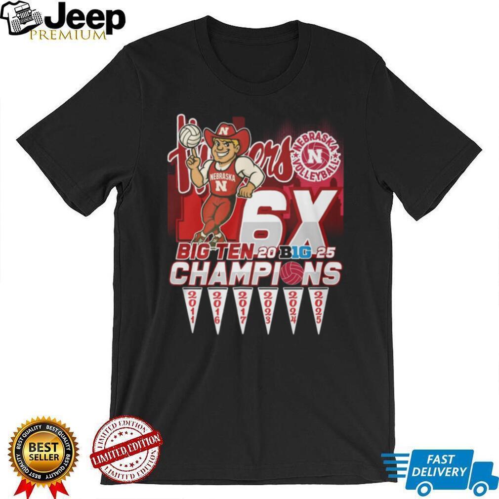 👕 About Nebraska Cornhuskers Volleyball 6x Big Ten Champions 2025 T Shirt