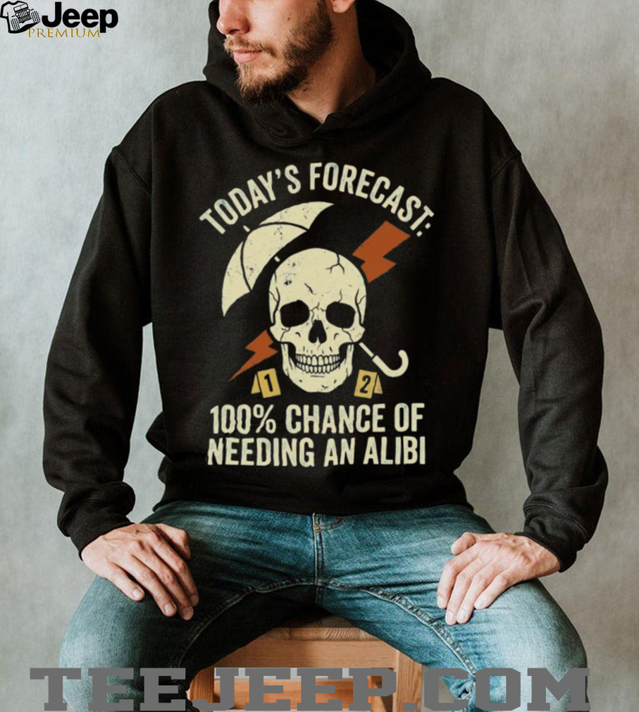 ()Needing an Alibi Weather Forecast Sarcastic Skull T Shirt, Treat yourself or make a great gift for your loved ones
