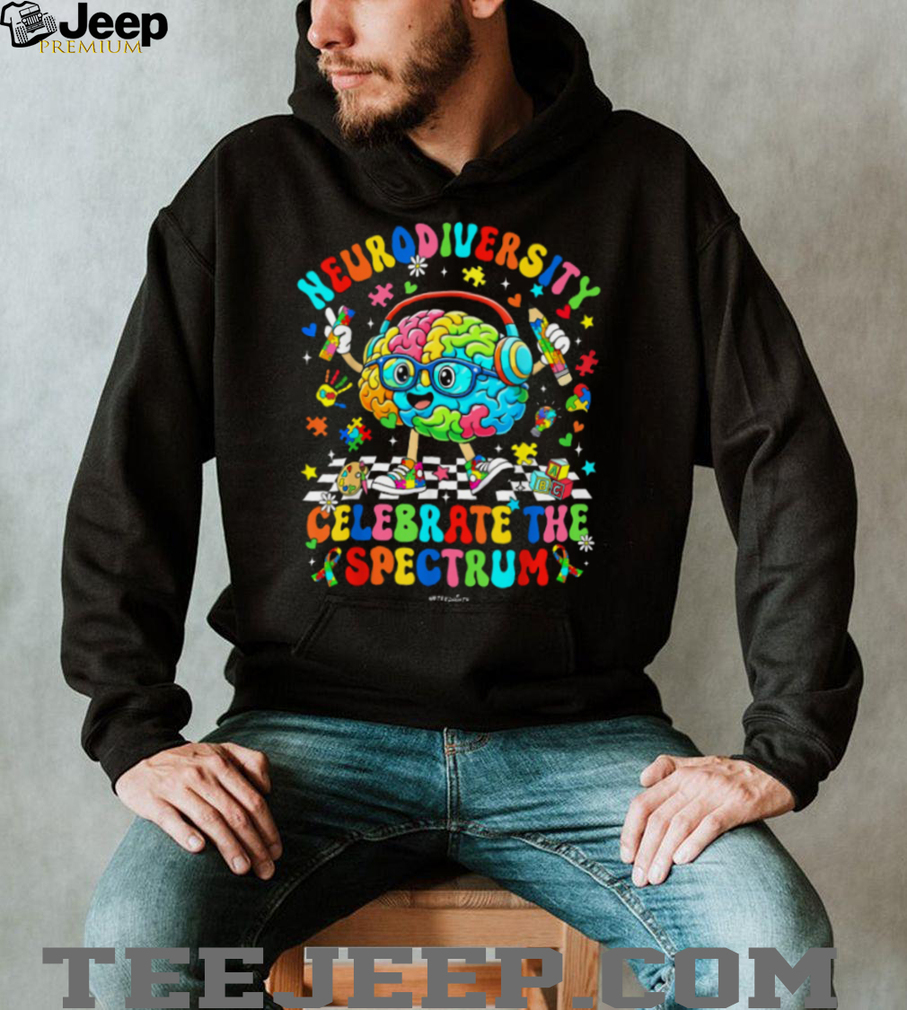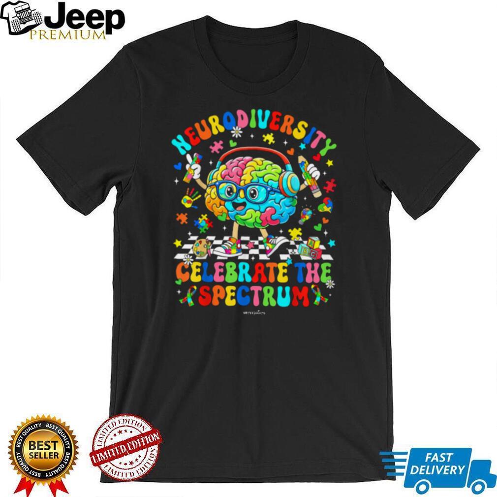 (Neurodiversity Celebrate The Spectrum Colorful Brain Graphic T Shirt)