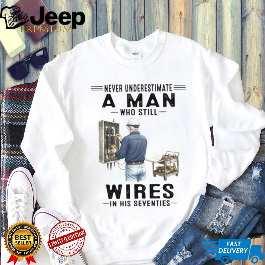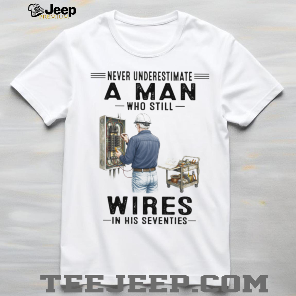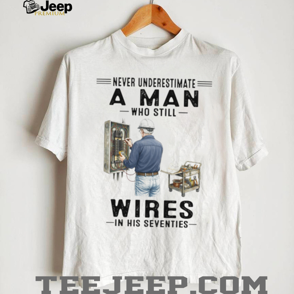 👕 About Never Underestimate A Man Who Still Wires In His Seventies Electrician T Shirt