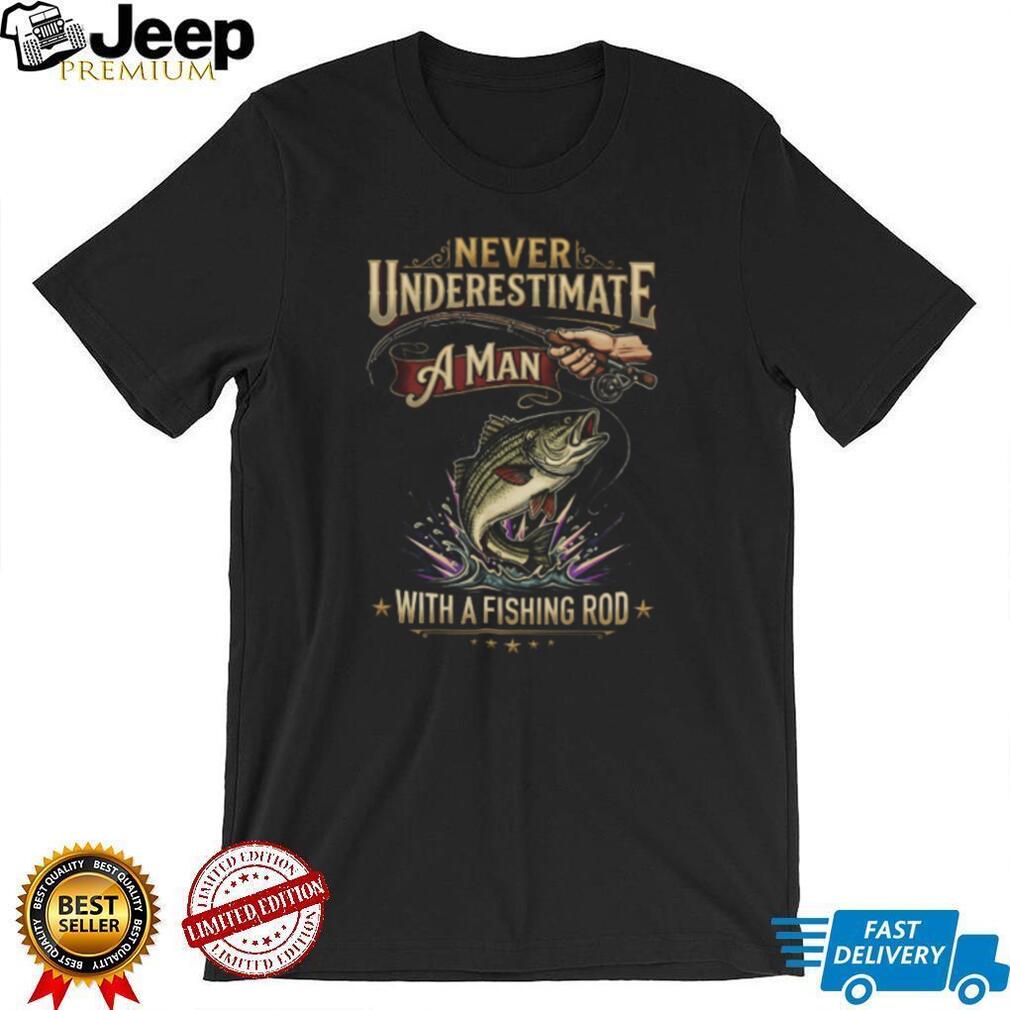 ()Never Underestimate A Man With A Fishing Rod Bass Fishing T Shirt, Treat yourself or make a great gift for your loved ones