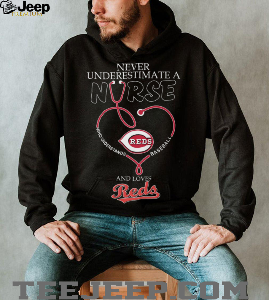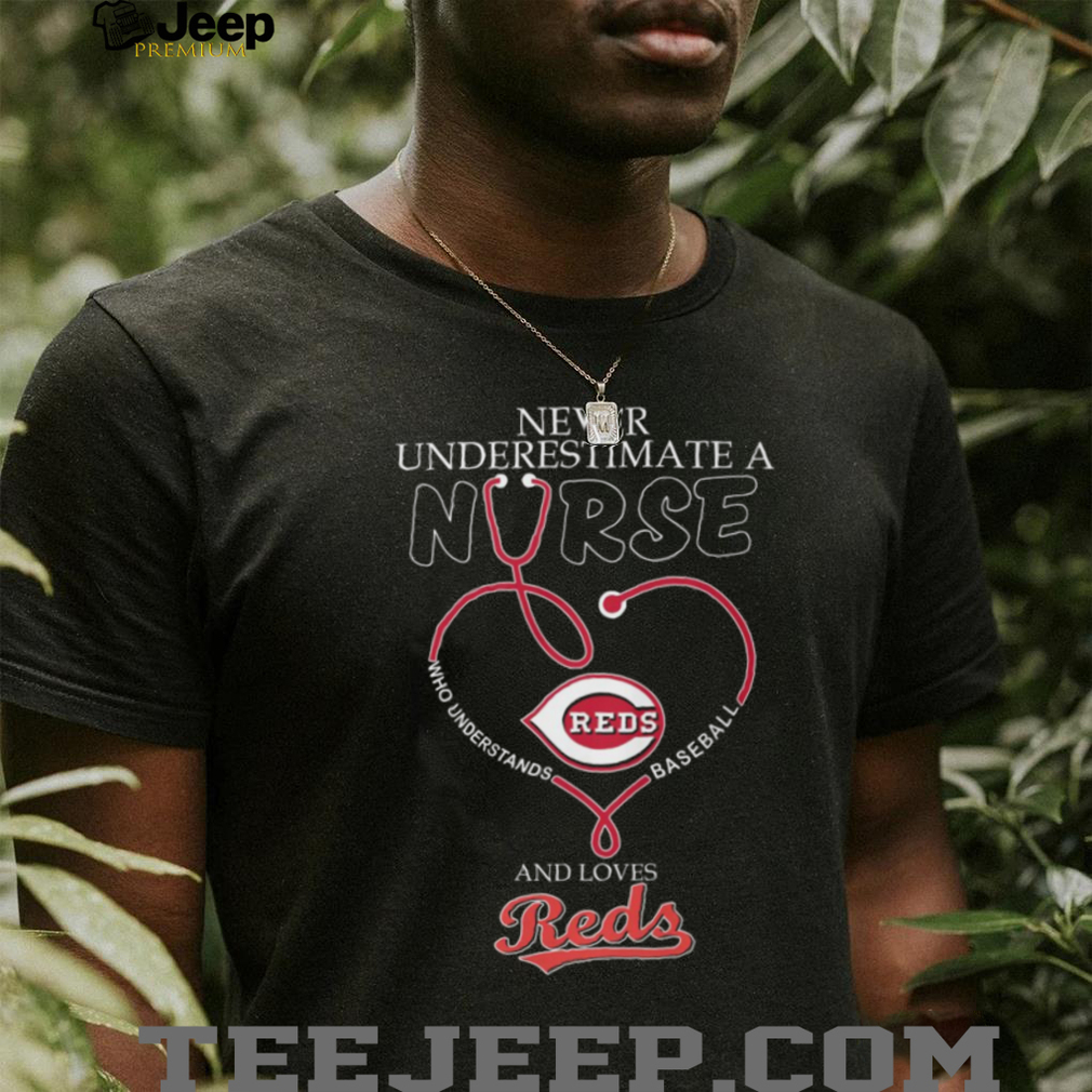 ()Never Underestimate A Nurse Who Loves Cincinnati Reds Baseball Heart Stethoscope T Shirt, Treat yourself or make a great gift for your loved ones