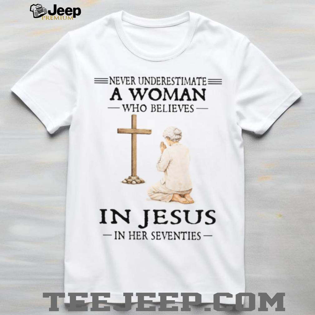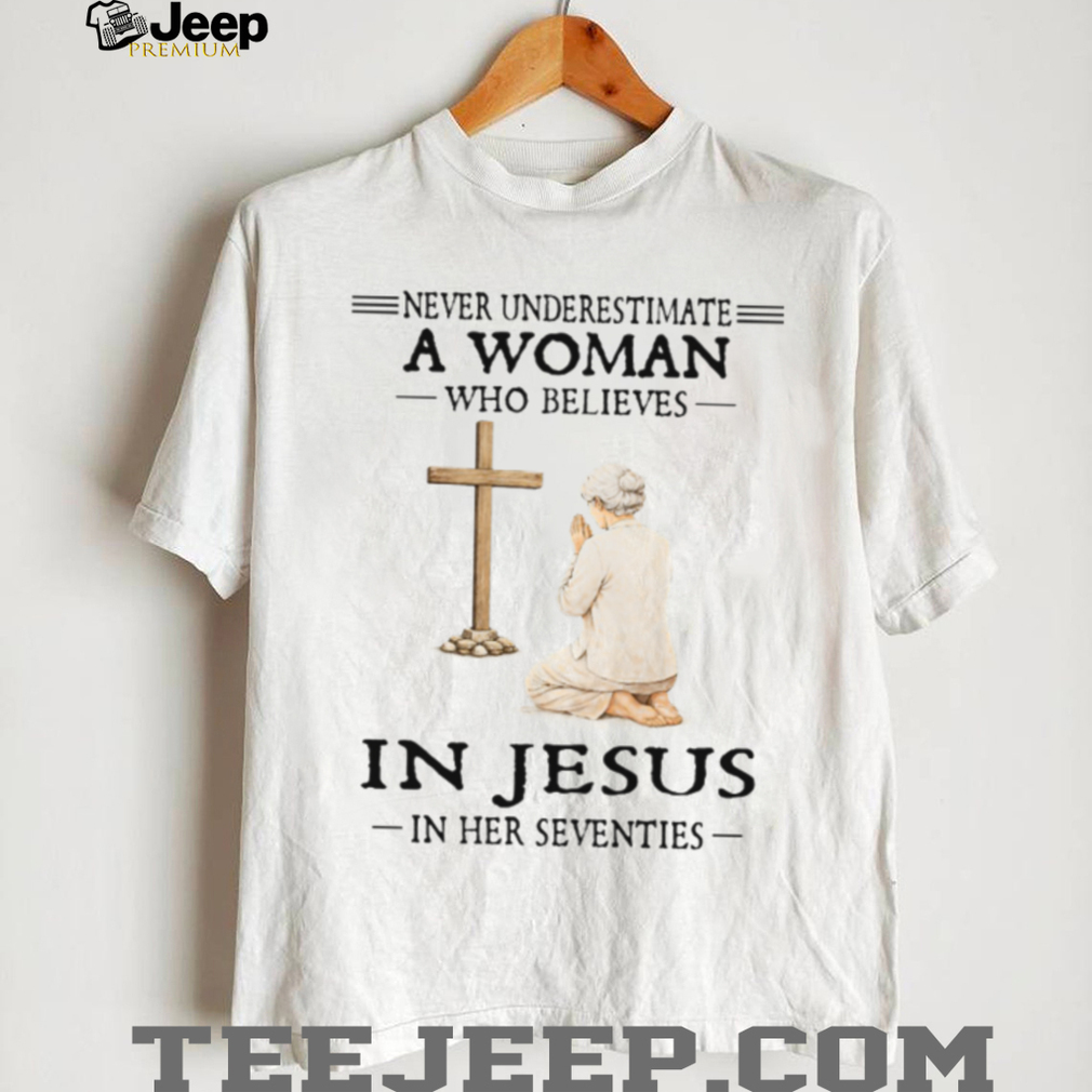 ()Never Underestimate A Woman Who Believes In Jesus In Her Seventies T Shirt, Treat yourself or make a great gift for your loved ones