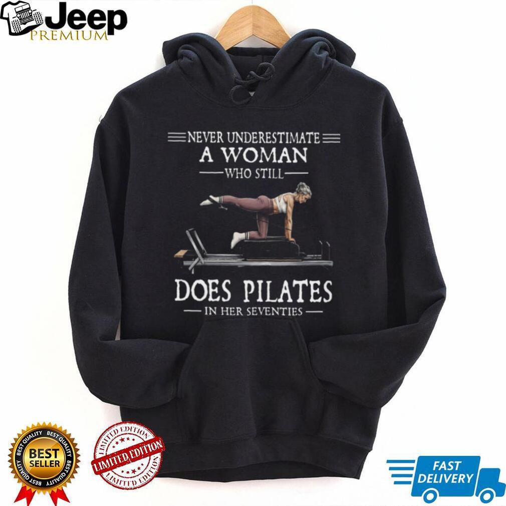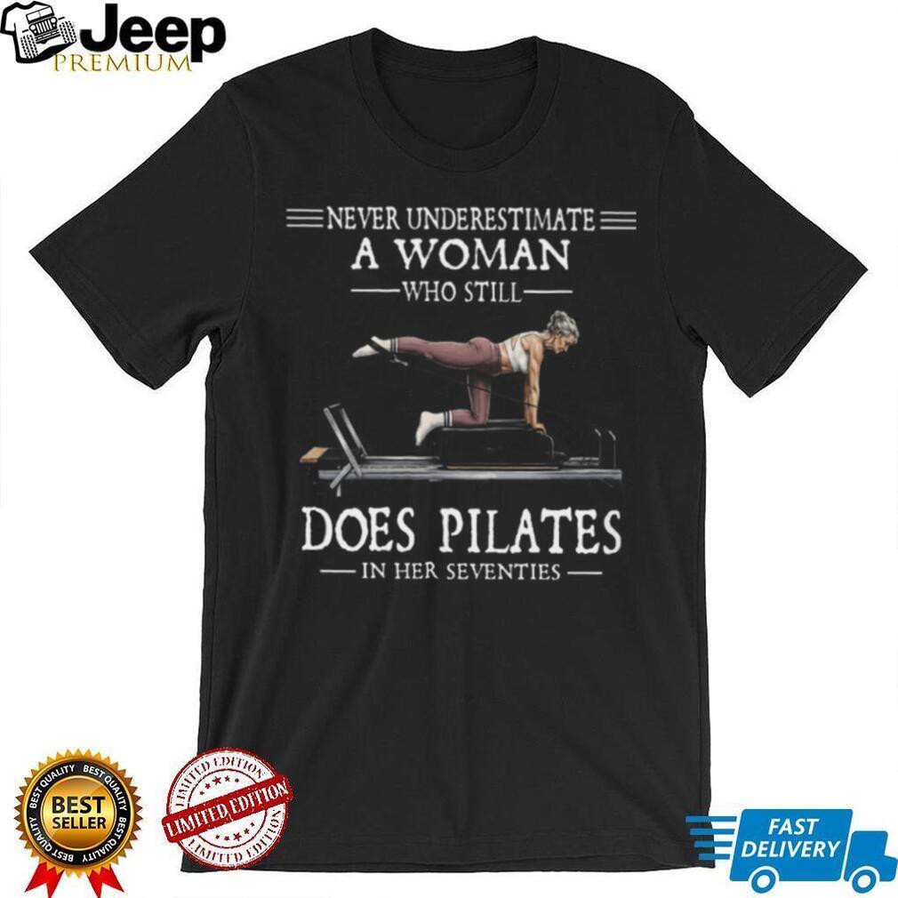 (Never Underestimate A Woman Who Still Does Pilates In Her Seventies T Shirt)Never Underestimate A Woman Who Still Does Pilates In Her Seventies T Shirt, Treat yourself or make a great gift for your loved ones