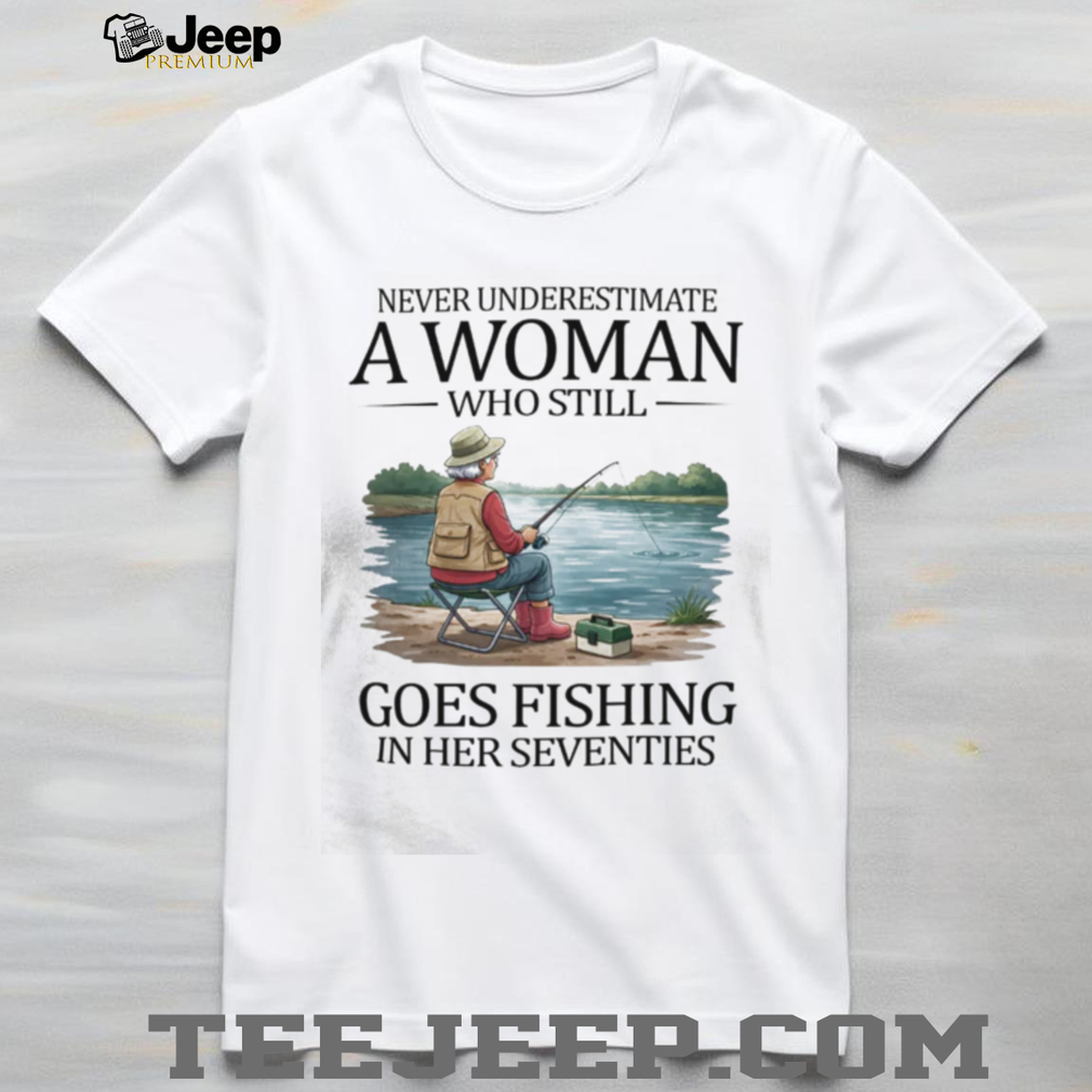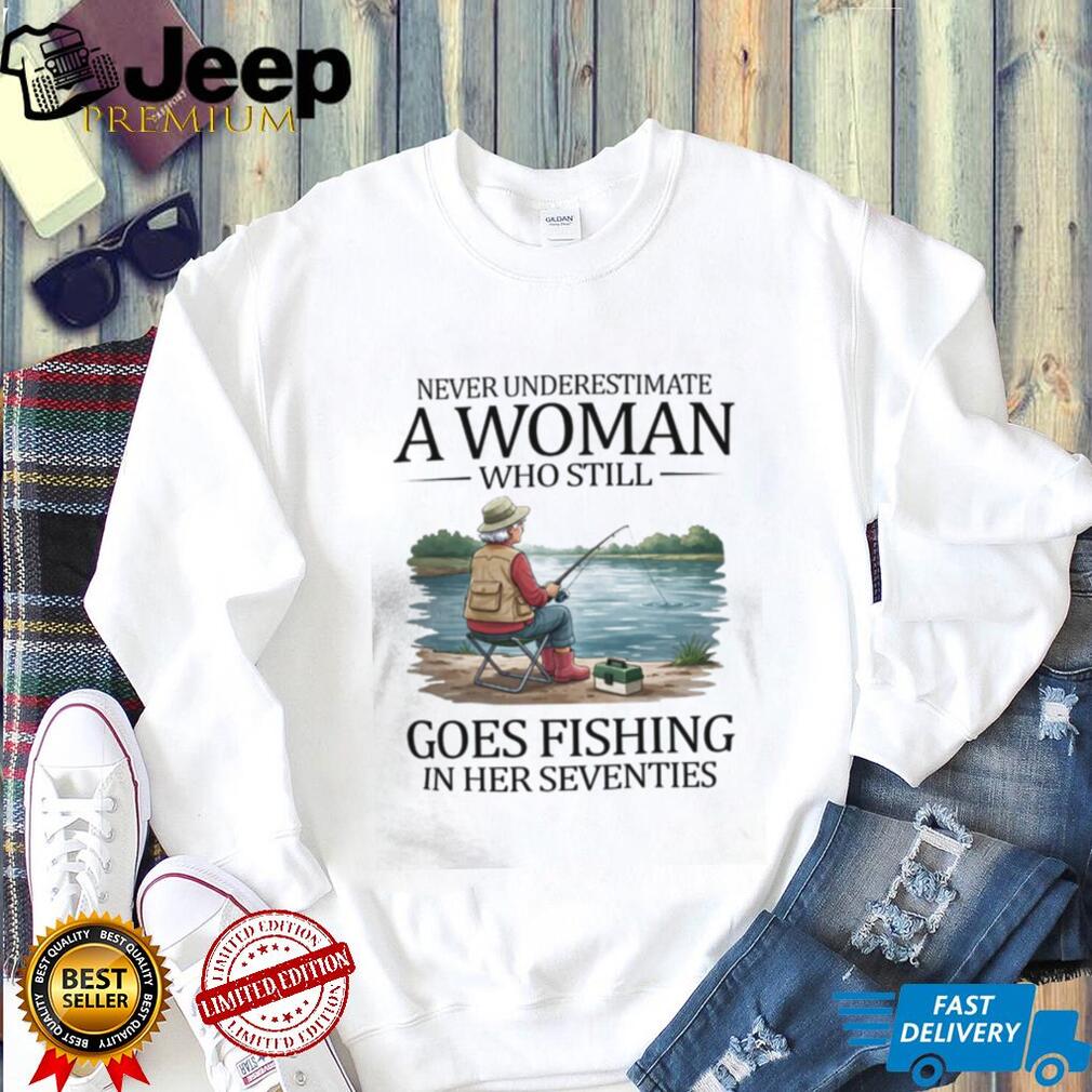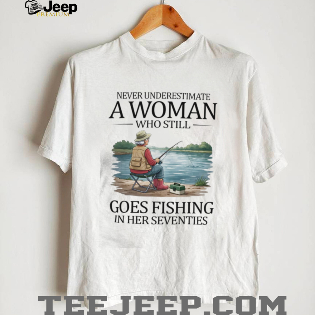 (Never Underestimate A Woman Who Still Goes Fishing In Her Seventies T Shirt)