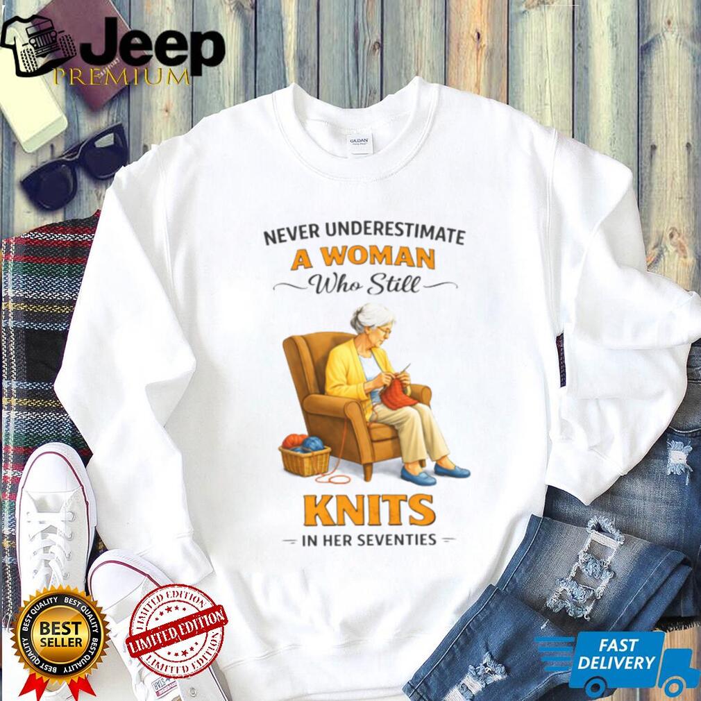 ()Never Underestimate A Woman Who Still Knits In Her Seventies T Shirt, Treat yourself or make a great gift for your loved ones
