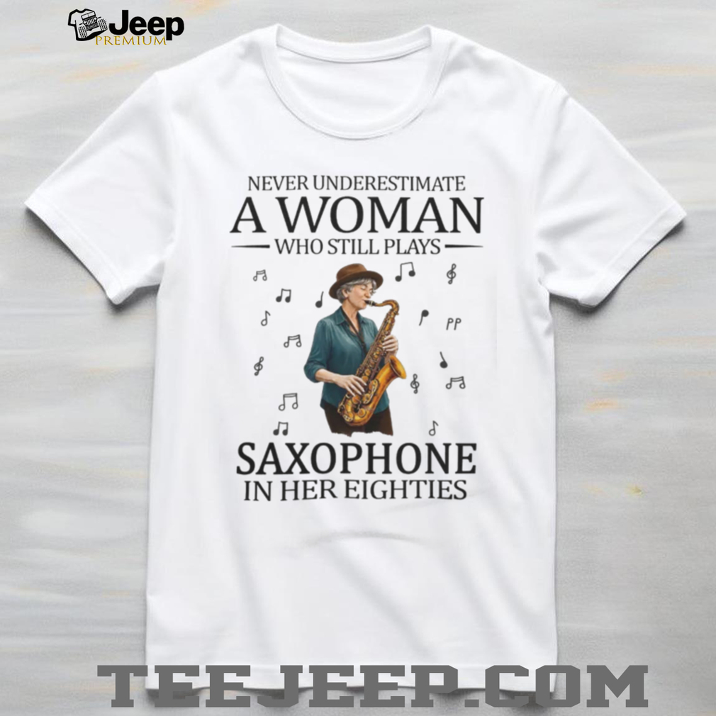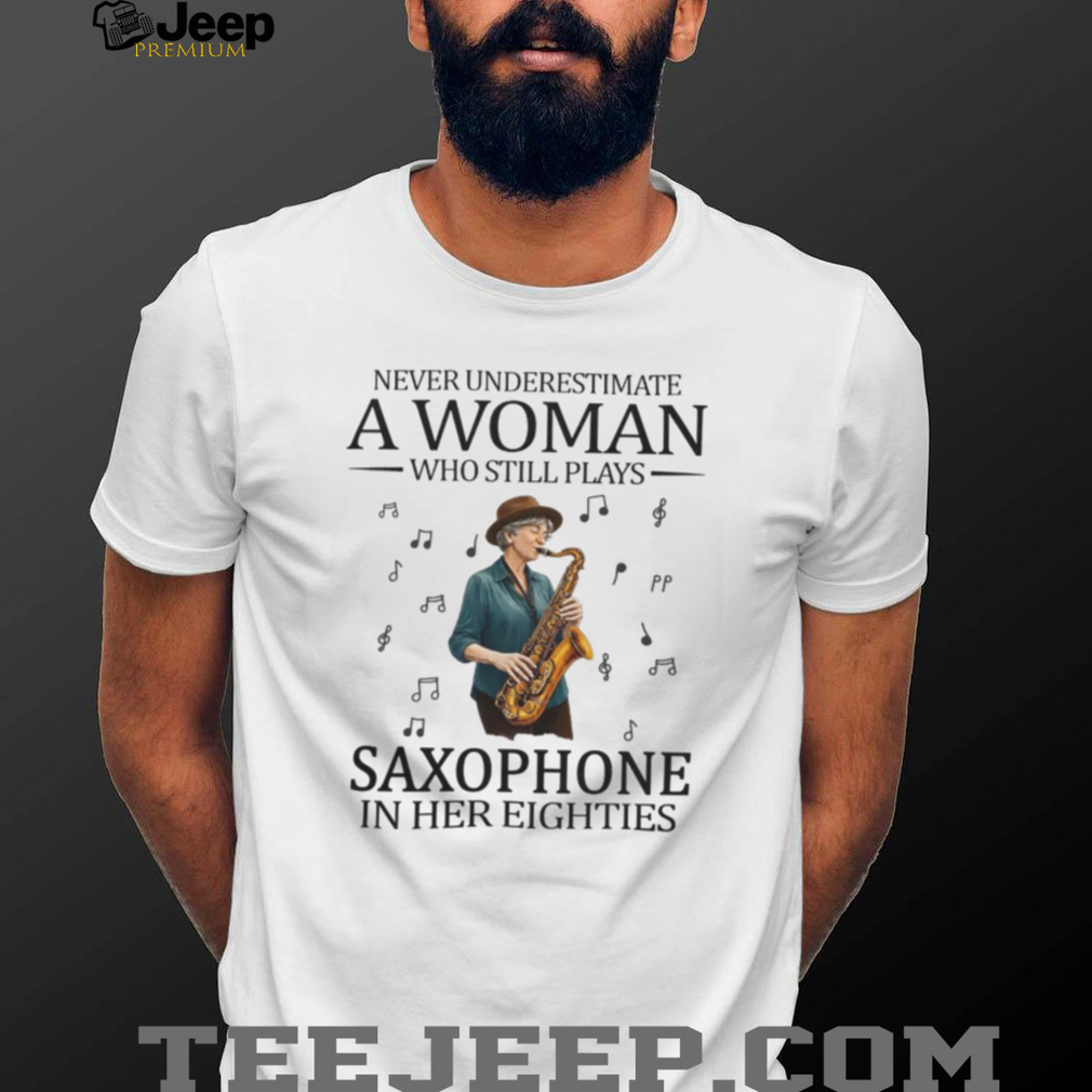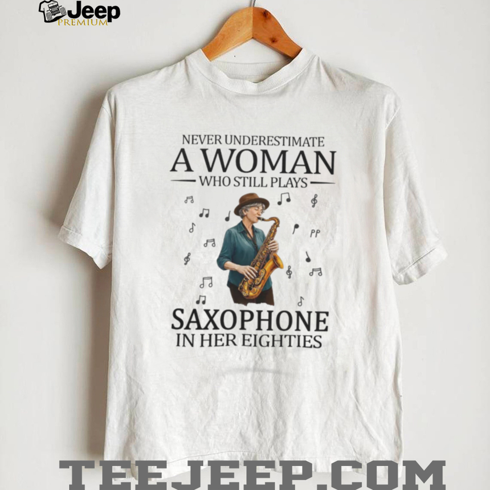 👕 About Never Underestimate A Woman Who Still Plays Saxophone In Her Eighties T Shirt