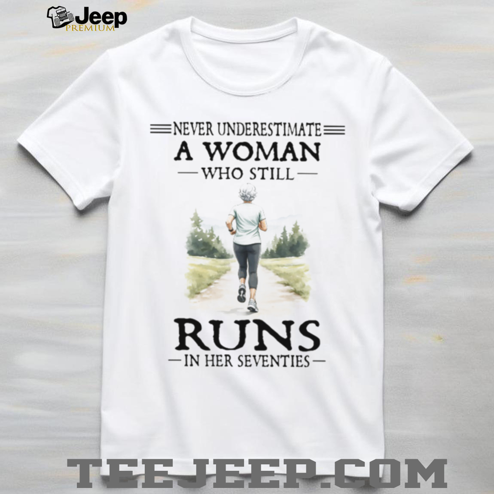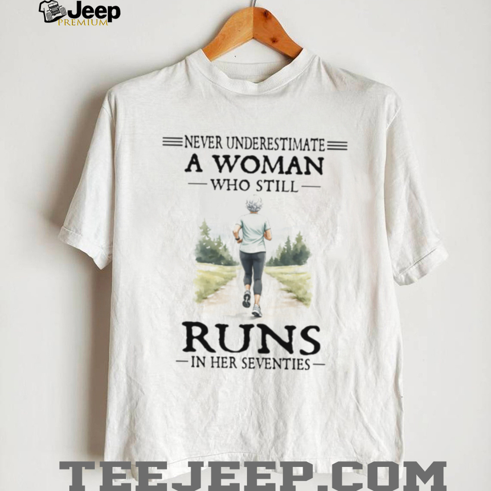 👕 About Never Underestimate A Woman Who Still Runs In Her Seventies T Shirt