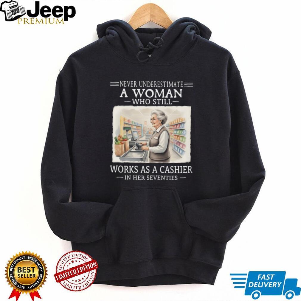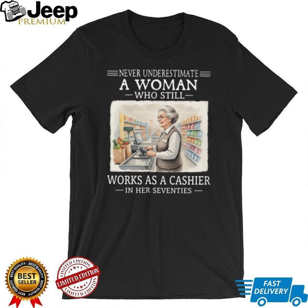 ()Never Underestimate A Woman Who Works As A Cashier In Her 70s T Shirt, Treat yourself or make a great gift for your loved ones