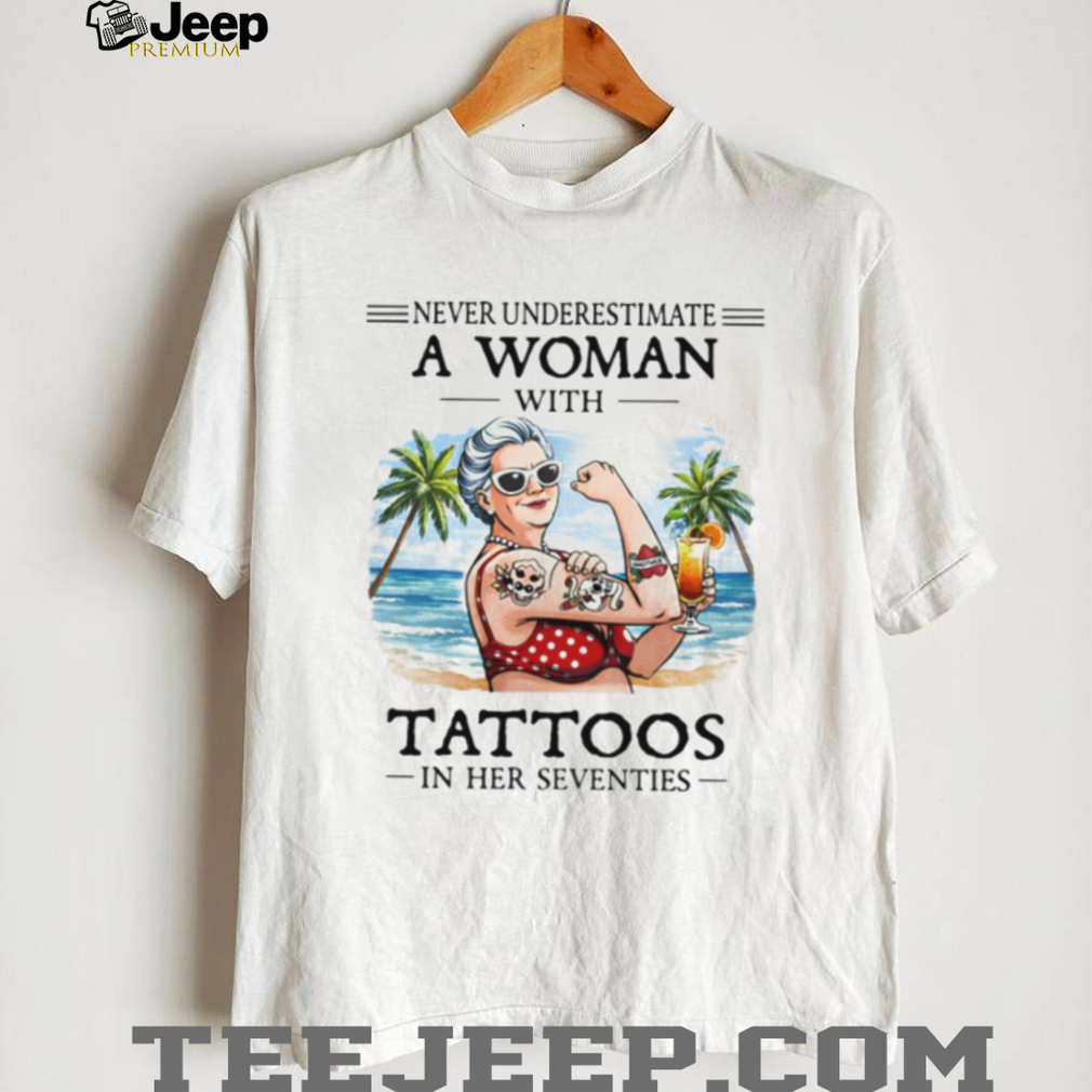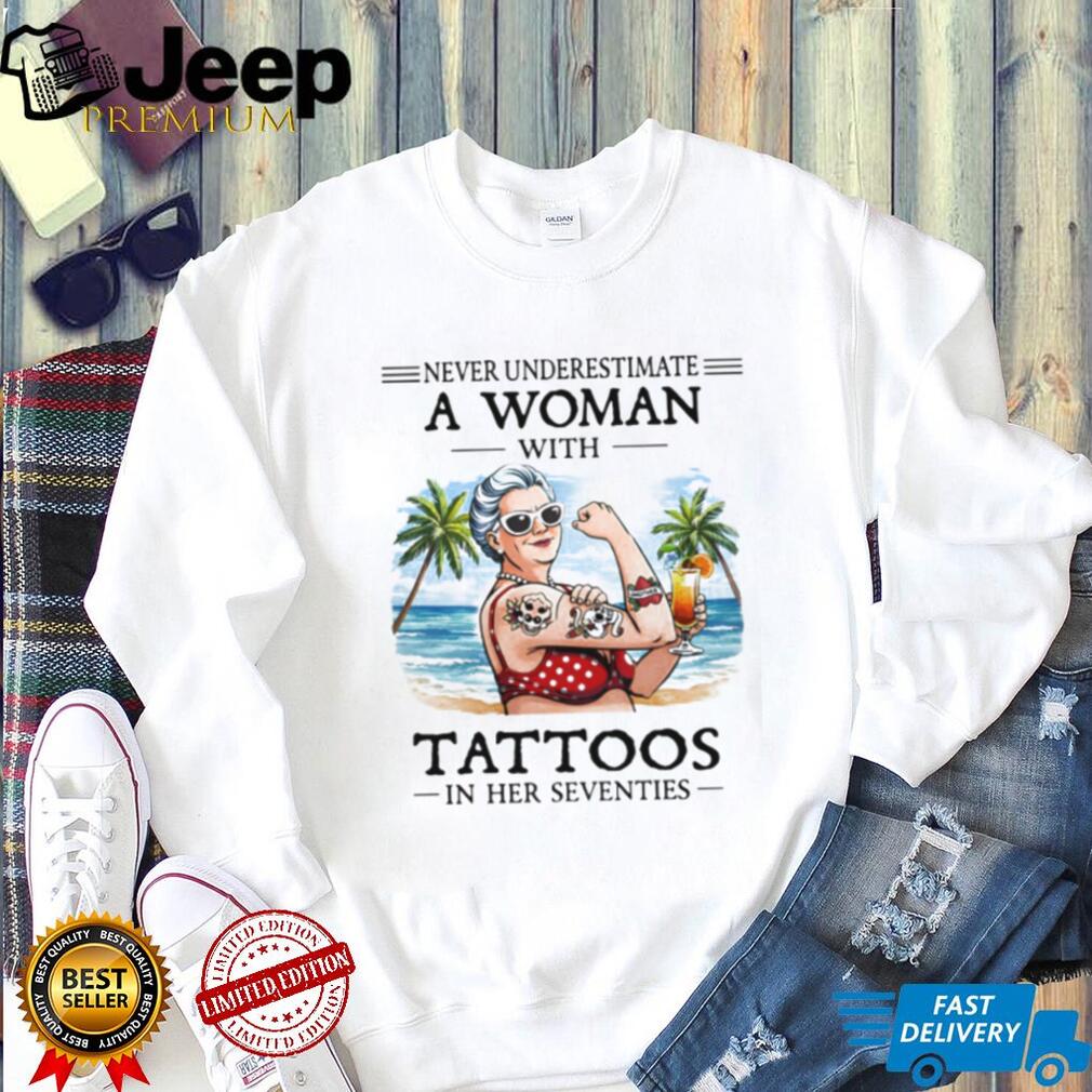 ()Never Underestimate A Woman With Tattoos In Her Seventies Beach Life T Shirt, Treat yourself or make a great gift for your loved ones
