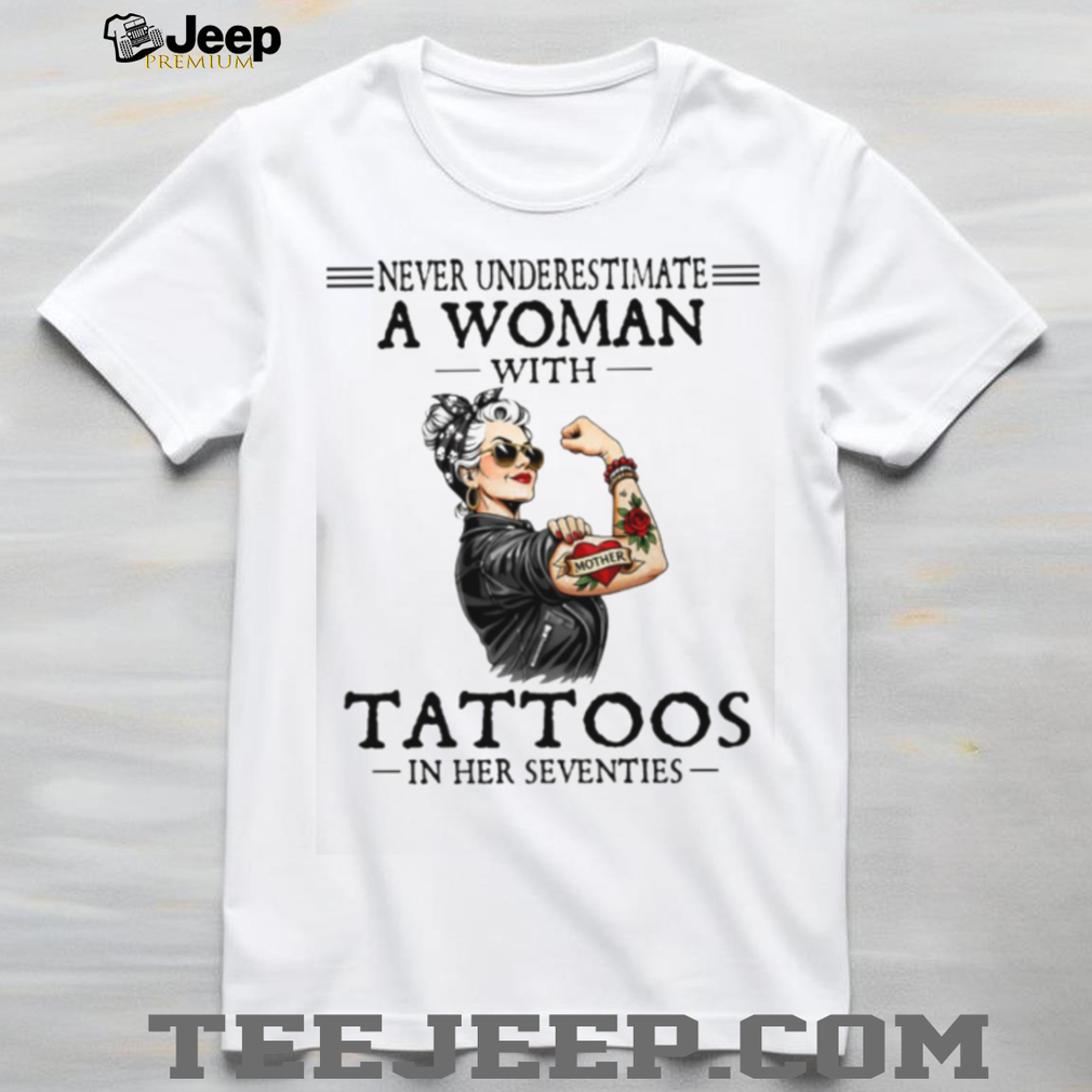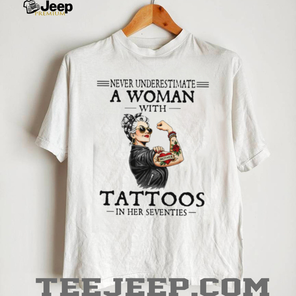 ()Never Underestimate A Woman With Tattoos In Her Seventies Retro T Shirt, Treat yourself or make a great gift for your loved ones